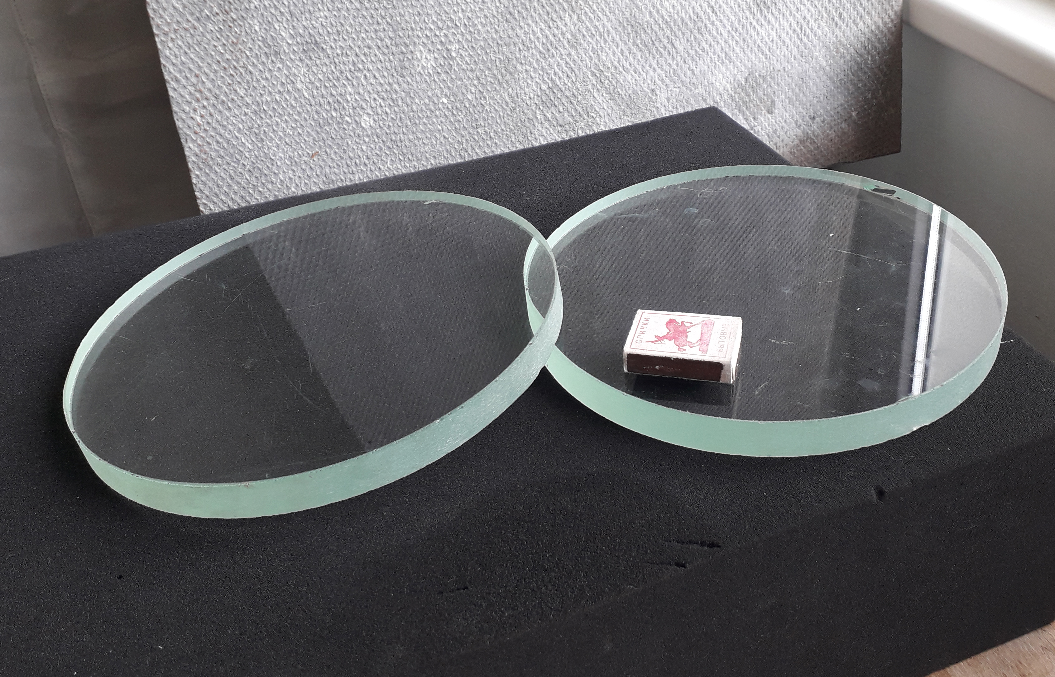 Были бы в коробках каждая. Там важна плоскостность и плоскопаралельность - тогда когда положишь на что то ровное увидишь кольца Ньютона которые будут показывать что и как не ровно. Там и стекло не простое. А здесь оттенок бутылочного таки. Такое может водится только на заводах где что то высокоточное выпускали. Где была плоскошлифовалка почему меня мысль посетила? там торцы как правило обработаны. а на фото что то зеленое и непонятно как обработанное. Но вроде обычное бутылочное https://www.ebay.com/itm/New-LapMaster- ... SwVedaghoV Технический вопрос по стеклуДа есть что то с зеленцой. Но с оптикой на работе тож дело имели в былые советские годы. А потом развалище и хранили как угодно, где угодно. И просто выбрасывали на помойку, то что могло работать. В стеклышки завтра внимательней потаращусь. Забыл - торцы матовые, не знаю к чему это.