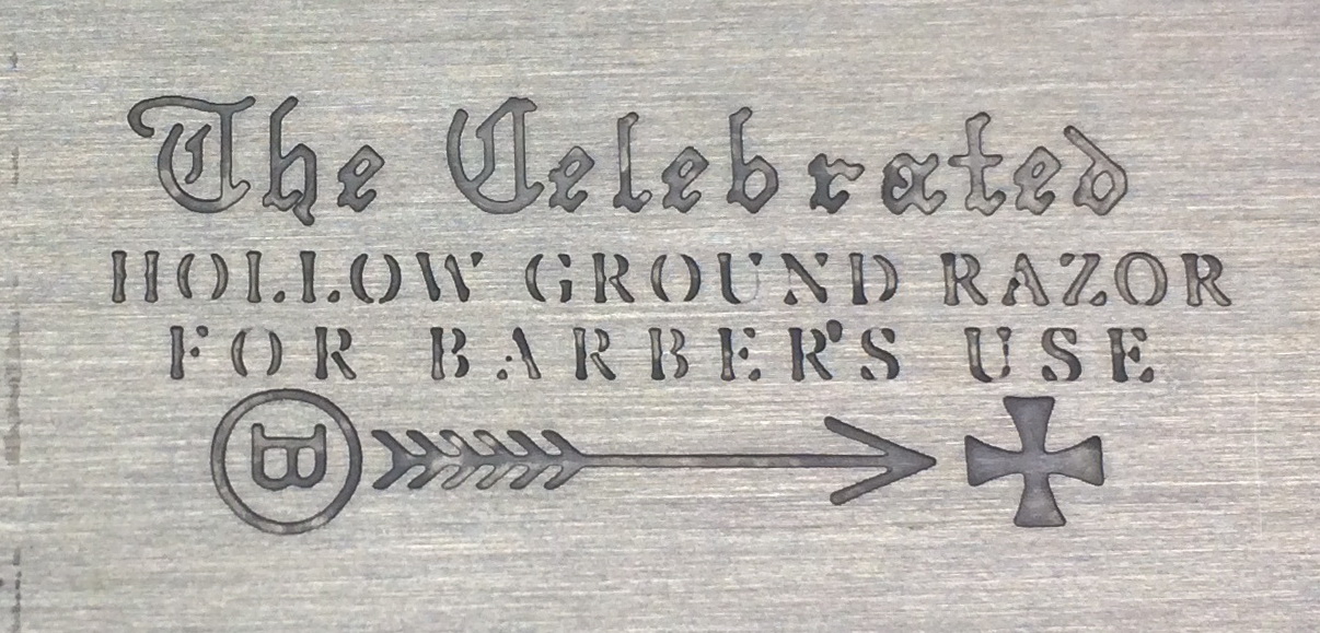 А по поводу стрелы. Вот глянь две разные фотки от старых бритв (выше) в одной явно видны тонкие палки. А у другой... кажется как у тебя, НО а м.б. раствор стек в капли по углам. Тут можно долго спорить. А по поводу оперения. Количество перьев зависело еще кстати и от товара. На стамесках по моему было 3 пера. Сейчас искать лень - но это страница каталога рекламная Батчера. Там разные лого
