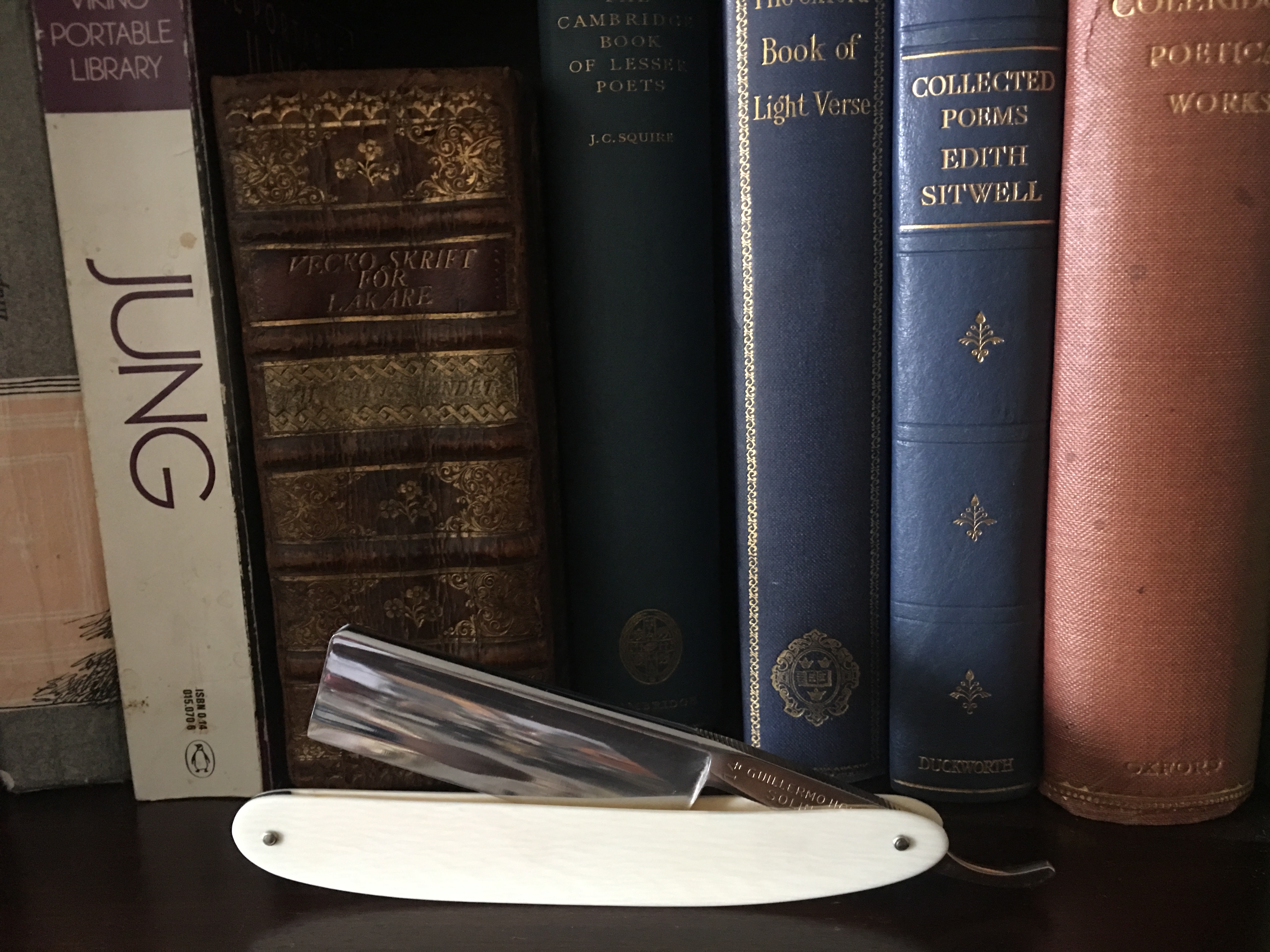 1) Joseph Smith&Son- 6/8, первый английский у меня. Люблю эту бритву за внешний вид и тактильные ощущения. Очень тяжёлый клинок с очень легкой почти невесомой костяной ручкой. Брился один раз ей. Лежит в коллекции чтобы было.