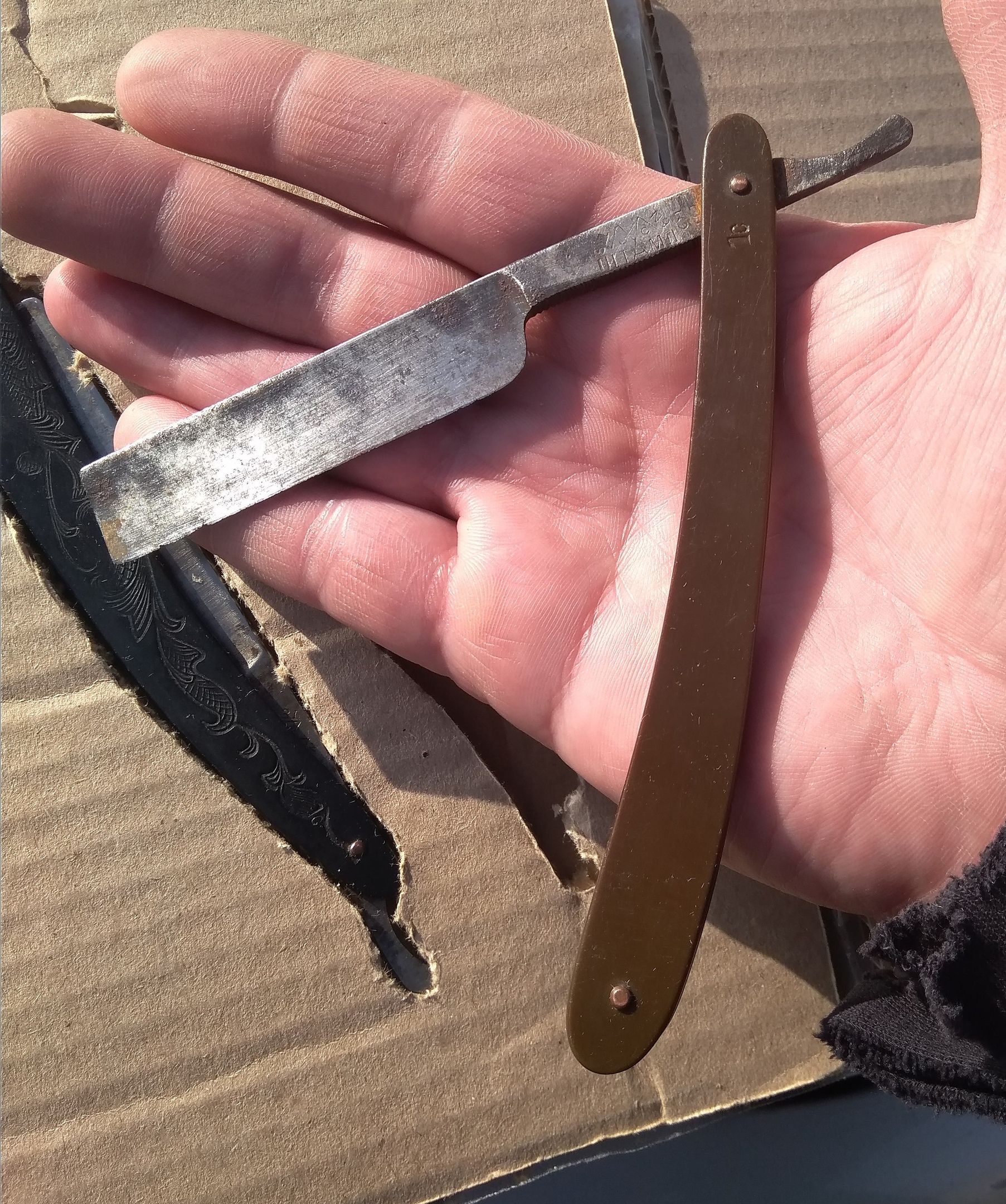Бритва до... и после...Одна из бритв, которыми занимался на майские. В принципе, нет ничего особенного, просто Москва 50 г. Вручную почистил, проклеил трещину у нижнего пина, убрал обратку, сформировал улыбку, заточил. На все ушло чуть больше часа