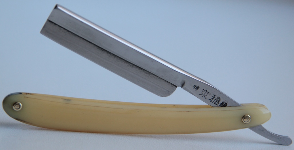 (登東和録 = nobori Tōwa-roku Ширина полотна-22 мм Толщина обушка-6.8 мм Форма лезвия-фреймбэк Углеродистая сталь. Середина 20-го столетия Бритва в прекрасном состоянии для своих лет, можно сказать, близкое к непользованному.. Не разбиралась и не ремонтировалась. С минимальными следами от заточных камней. Родная ширина полотна. Идеальная геометрия:кромочка равномерна по всей длине. Сталь и кромка чистые.Будет отличным , практичным и совершенно недорогим вариантом для опытного пользователя, желающего испробовать и такую форму лезвия в деле. Бритва будет заточена и подготовлена к бритью. цена-4300 р с доставкой ПРОДАН Spoiler Show