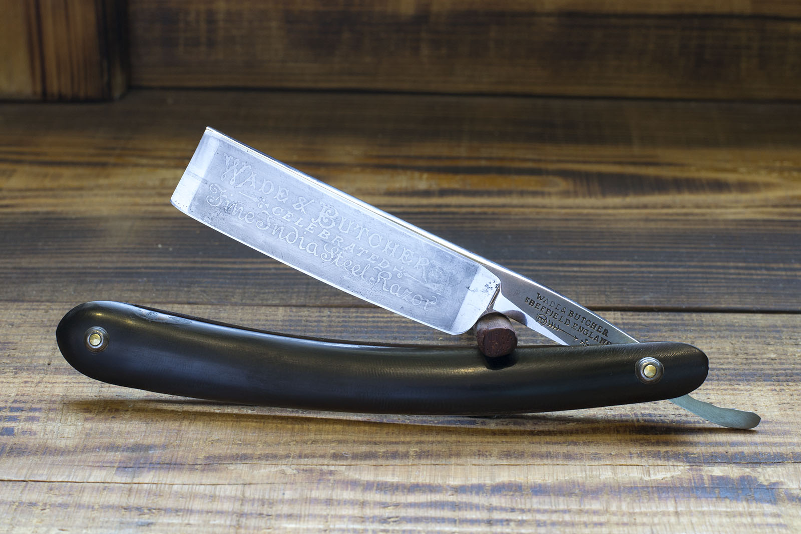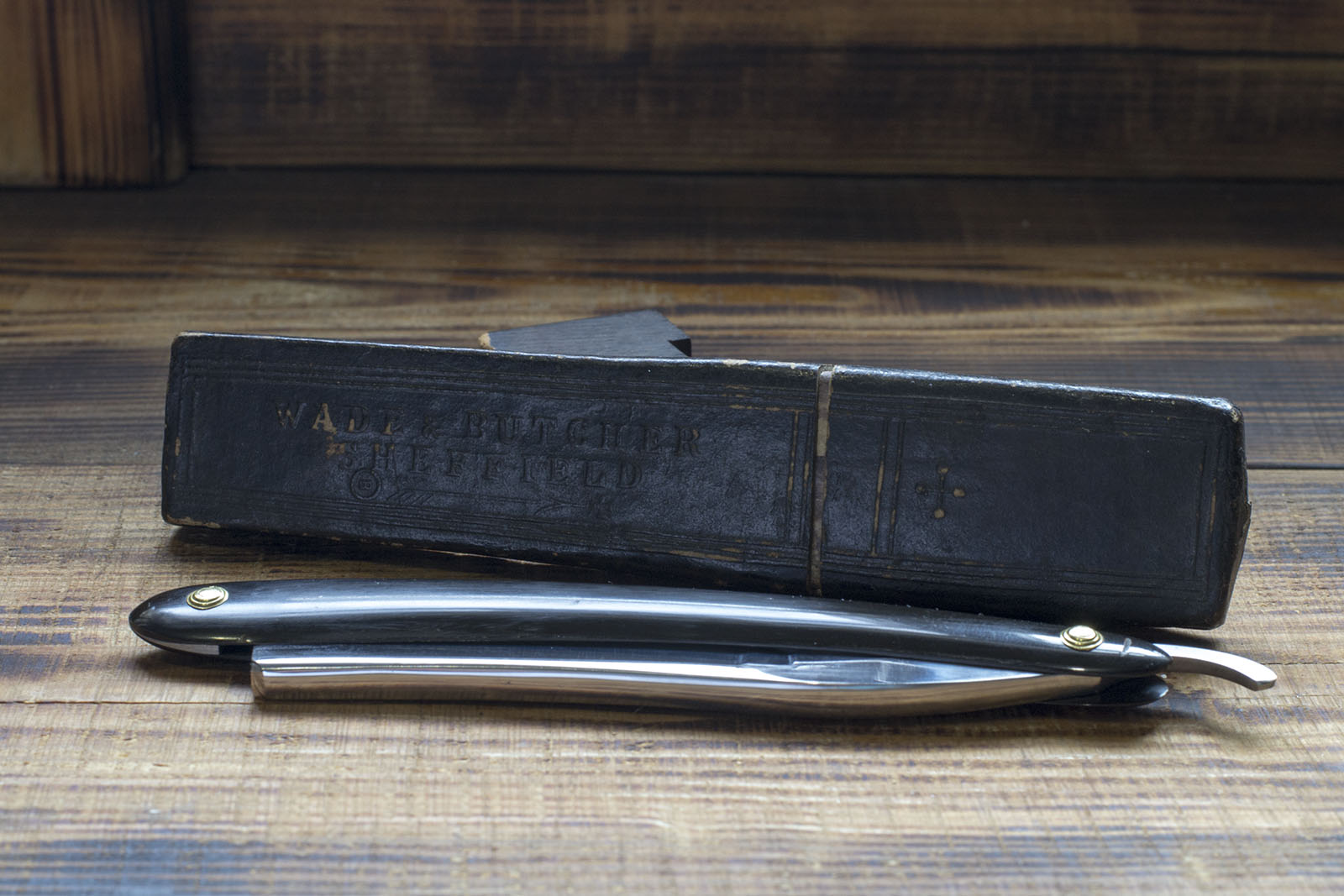 Бритва от самого известного и наиболее почитаемого английского бренда Wade&Butcher. Изготовлена в конце 19 века, о чем свидетельствует клеймо England на эрле. Сделана из углеродистой стали Fine India, той самой литой тигельной стали, прославивший Шеффилд, технология очевидно частично была позаимствована у индийцев и их традиционного вутца, именно поэтому сталь носит название Fine India. Во время заточки заметил что сталь несколько более твердая чем на ранних клинах Fine India, думаю, это даст некоторое продление режущих свойств по сравнению с большинством шеффилдских клинов середины 19 века. Бритва имеет родную роговую рукоять, несколько деформированную, но все еще функциональную, удалось сохранить родные шайбы Bulls Eye. Полотно находится в прекрасном состоянии, имеет правильную геометрию, фаска режущей кромки тонкая и равномерная, ширина 20.5 мм. Классический среднеразмерный клин, подойдет как новичку, так и опытному пользователью. Заточена и готова к бритью. Продано Fine India Show