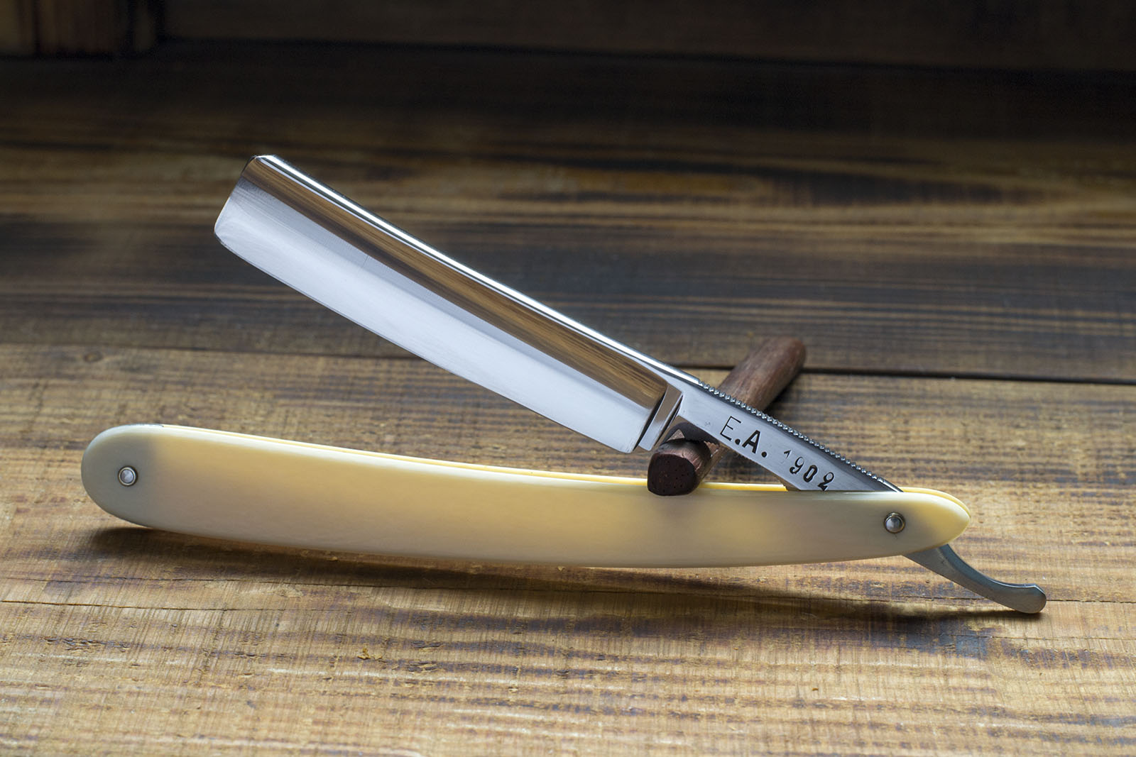 Опасная бритва с маркировкой E.A. 1902, попала ко мне в футляре от Альберта Штилле - известного шведского производителя хирургического инструмента и опасных бритв, склонен считать что производитель именно Stille. Бритва практически новая, полотно имеет заводскую полировку, тем не менее я разобрал ее чтобы почистить эрль и поставить качественные шайбы. Ширина 16 мм., рукоять из слоновой кости, отличная шведская углеродистая сталь высочайшего качества и хорошая геометрия, бритва заточилась легко , но в нескольких местах фаска режущей кромки немного расширяется что никоим образом не повлияет на эксплуатацию. Отлично подойдет для повседневного бритья или для окантовки, шведская углеродка обеспечит длительное удержание остроты без доводки. Рекомендую как новичкам, так и опытным пользователям. Рукоять из слона имеет красивые текстурные и контрастные прожилки. Бритва заточена и готова к бритью. Продано 1902 Show