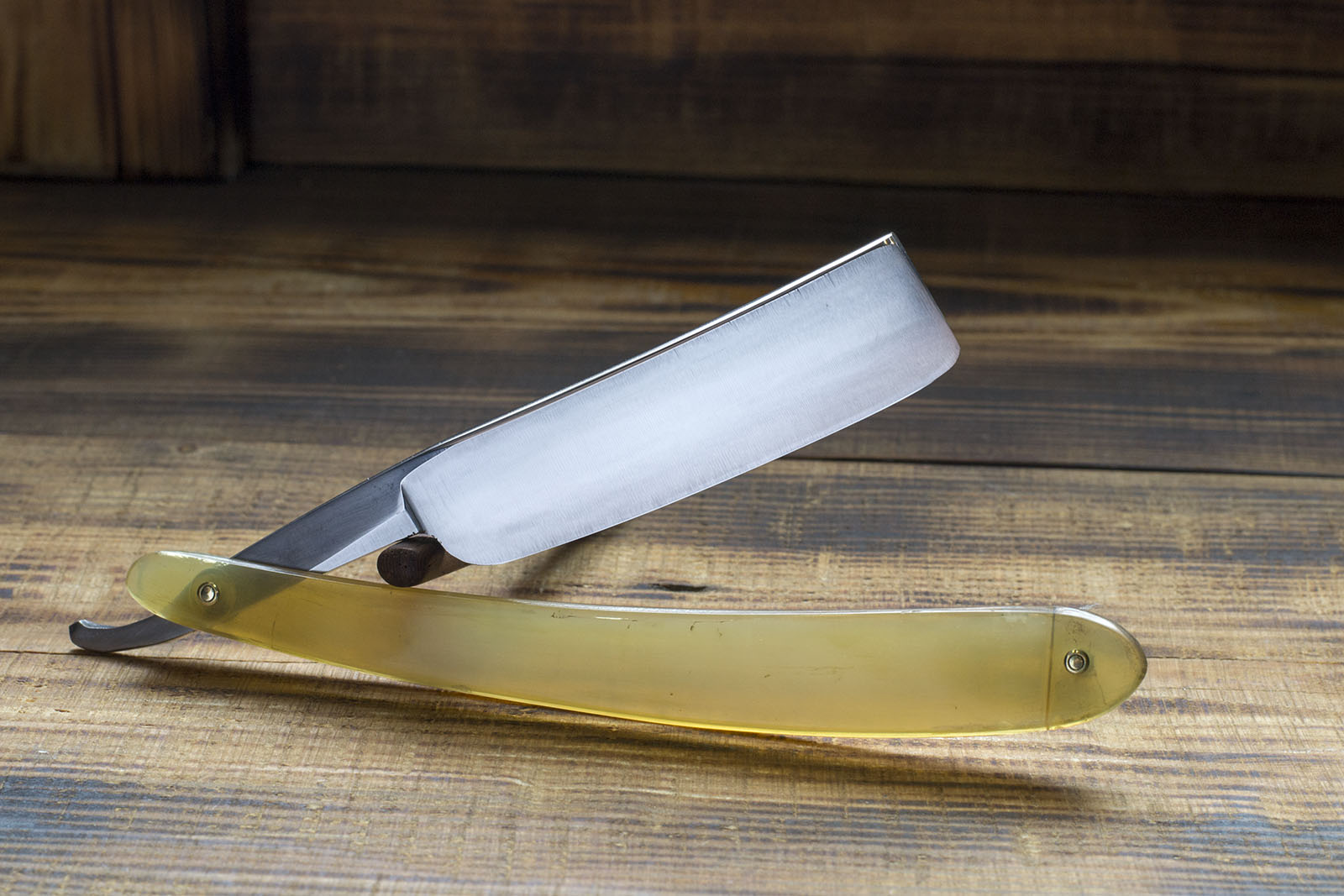 Опасная бритва, произведеннаяя во Франции в первой четверти 20 века, ширина 20.5 мм, белая рукоять из целлулоида, характерной для того периода формы и качества, сделана довольно добротно но имеются некоторые размытые вкрапления другого цвета, кроме того есть пара небольших углублений, вероятно являющимися технологическими дефектами, которые никак не влияют на функционал и прочность. Вогнутость полотна - 1/2, бритва изготовлена из качественной углеродистой стали, при этом имеет прекрасную геометрию, фаска режущей кромки тонкая и равномерная, уверен что бритва не была в использовании и несмотря на почтенный возраст сохранила фабричный вид. Не подвергалась каким либо работам, кроме ручной полировки и заточки. На полотне травление - Special Barbe Dure - специально для жесткой щетины, думаю это абсолютно справедливое утверждение, так как бритва имеет все предпосылки для длительного удержания заточки и бесшумного, за счет вогнутости, удаления щетины любой жесткости. Бритва заточена и готова к бритью, прекрасно подойдет новичку, отличная альтернатива современным бритвам из Франции. Продано Choli Show