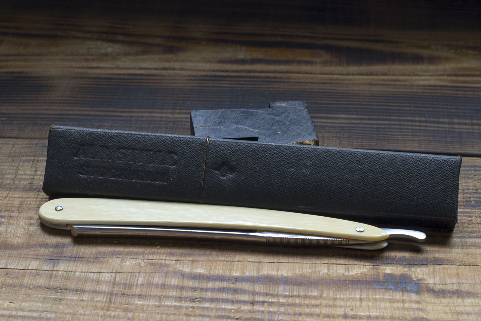 Опасная бритва с маркировкой E.A. 1902, попала ко мне в футляре от Альберта Штилле - известного шведского производителя хирургического инструмента и опасных бритв, склонен считать что производитель именно Stille. Бритва практически новая, полотно имеет заводскую полировку, тем не менее я разобрал ее чтобы почистить эрль и поставить качественные шайбы. Ширина 16 мм., рукоять из слоновой кости, отличная шведская углеродистая сталь высочайшего качества и хорошая геометрия, бритва заточилась легко , но в нескольких местах фаска режущей кромки немного расширяется что никоим образом не повлияет на эксплуатацию. Отлично подойдет для повседневного бритья или для окантовки, шведская углеродка обеспечит длительное удержание остроты без доводки. Рекомендую как новичкам, так и опытным пользователям. Рукоять из слона имеет красивые текстурные и контрастные прожилки. Бритва заточена и готова к бритью. Продано 1902 Show