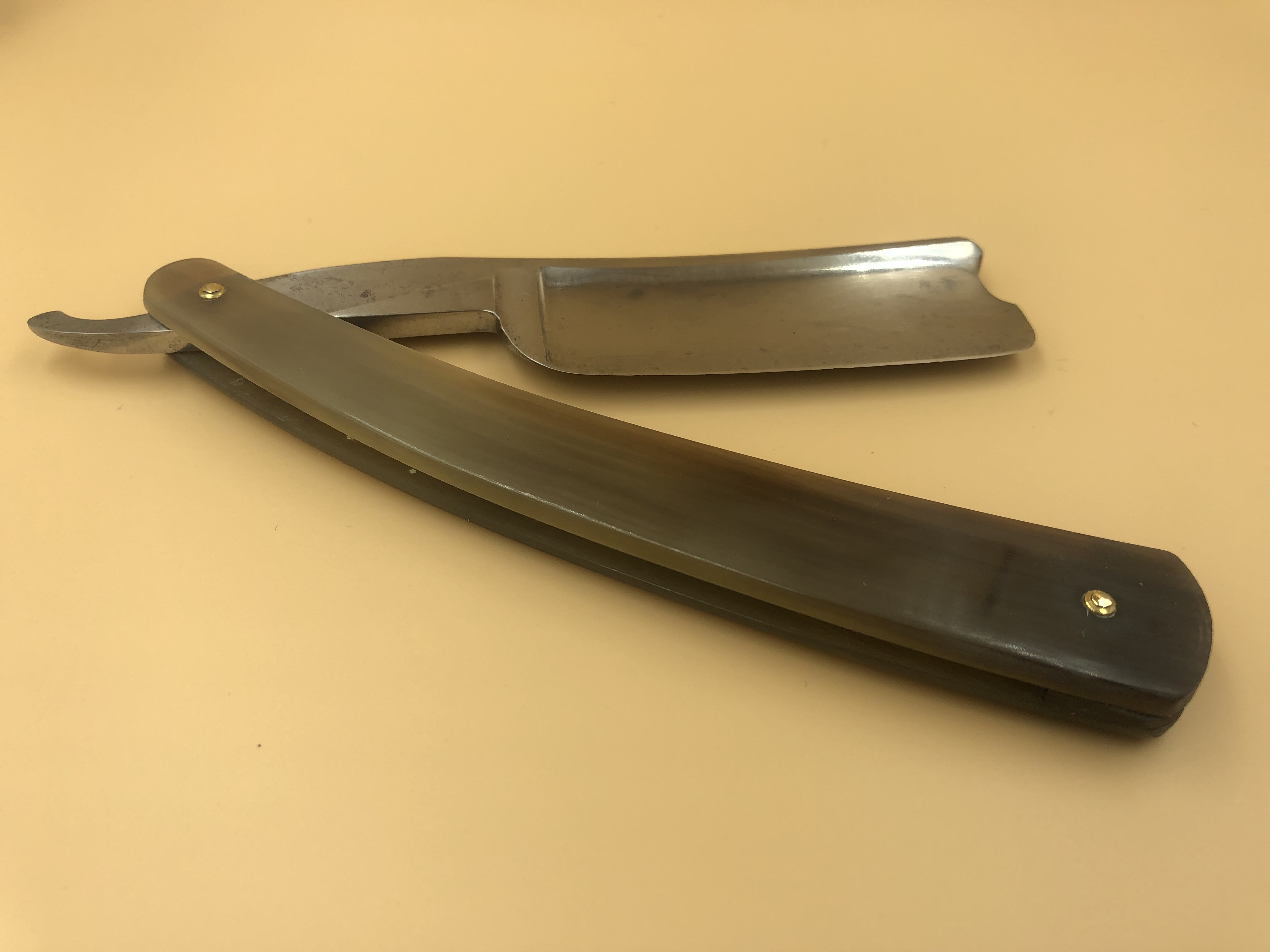 Ширина бритвы 18мм, толщина обуха 5.3мм Роговая оправа Прямая головка, клин Бритва заточена на японских натуральных камнях и готова к бритью. Родная коробочка в идеальном состоянии Цена с доставкой по миру 7500 рублей
