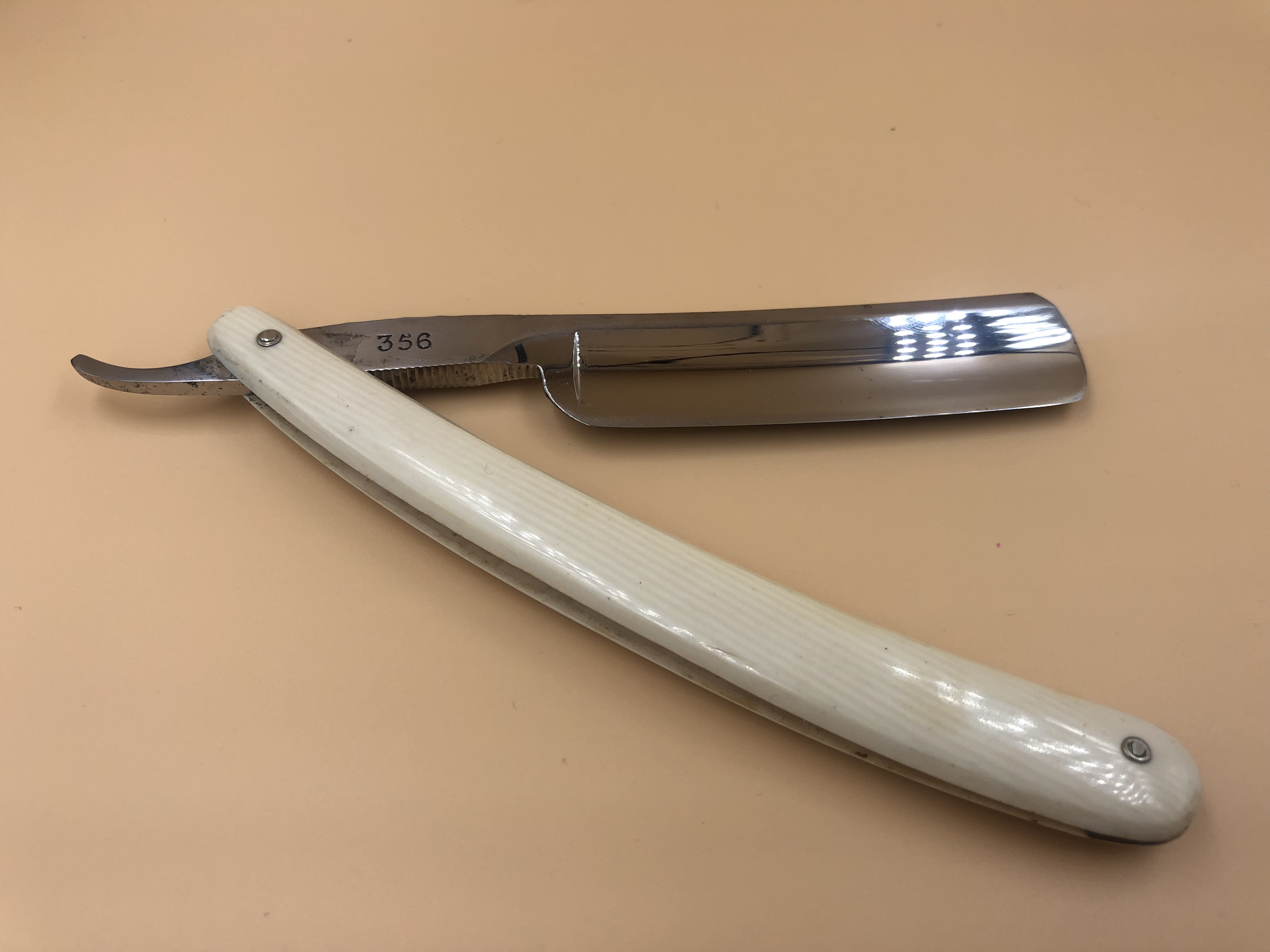 Размер честные 5\8, полная вогнутость. Производство 30-ые годы 20 столетия. Бритва заточена, протестирована. Очень мягкое и комфортное бритье. Подойдет как опытному бритвоману, так и новичкам, только познающим кайф от бритья опасными бритвами. Цена с доставкой по СНГ продана рублей