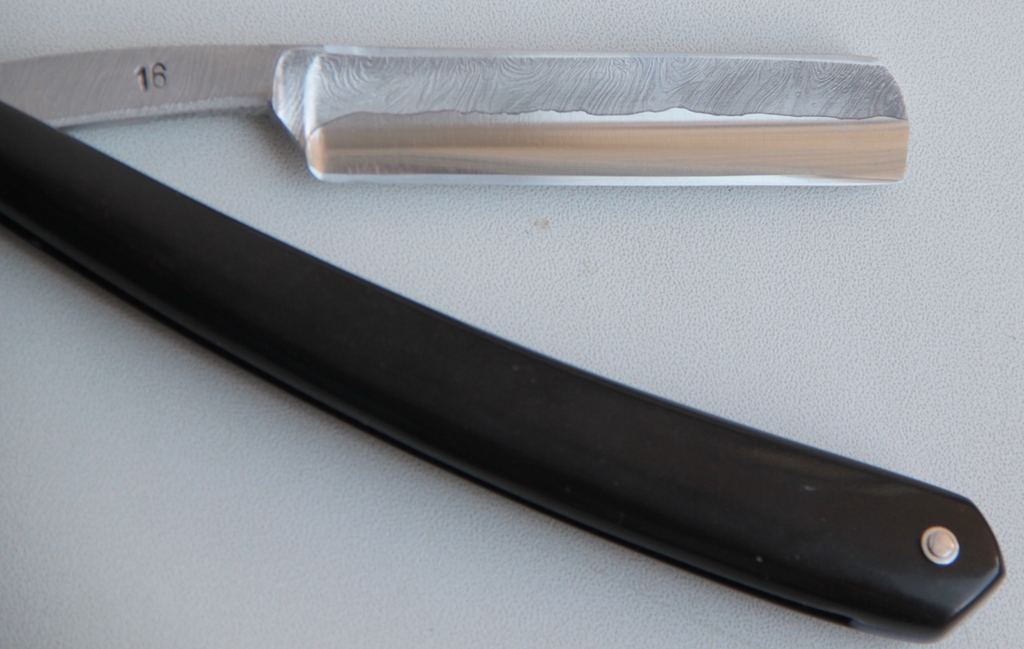 Я не специалист в металловедении и производства сталей и сплавов и сужу чисто на основе своего опыта заточки тех или иных марок . К бритвам из дамаска всегда относился с настороженностью и подозрением,хотя из того, что было у меня в пользовании, все бритвы брили более-менее. Данный экземпляр могу поставить на первое место по качеству самой стали, проварки пакета и качеству заточки.Если на других бритвах из дамаска слои и непровар были видны невооружённым глазом, то тут всё чётко, и кромка представляет собой единое целое, практически без видимых переходов.Сталь не звенит, как многие качественные углеродки и напоминает немецкие новоделы или наши Стизы и Вачи, чисто тактильно.