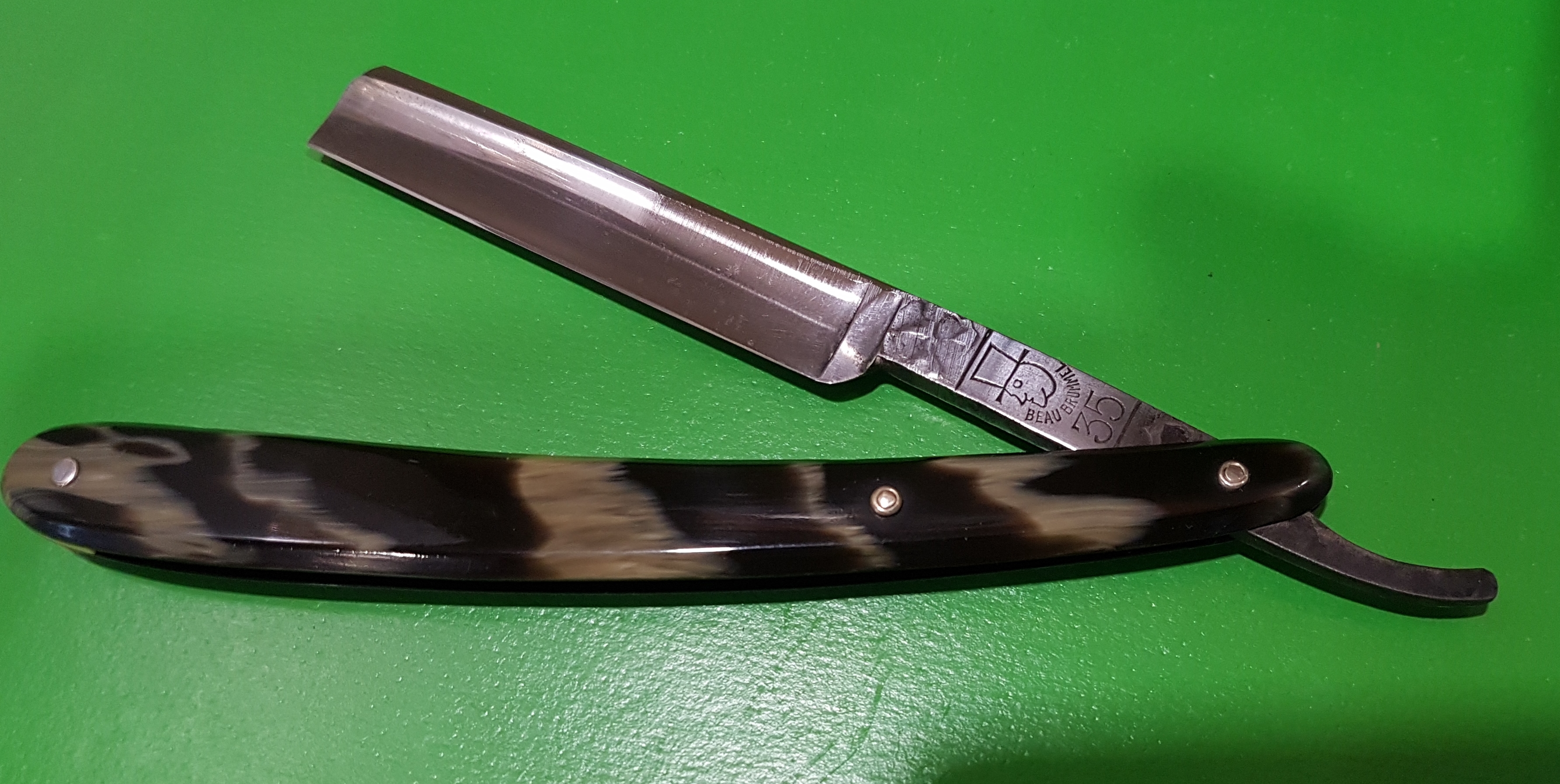 Вторая половина 19 века. Ширина клинка 6/8. Ручка светлый (медовый) рог. Бритва в отличном состоянии приобреталась на форуме. Заточена. Бреет шикарно. Продано. Spoiler Show