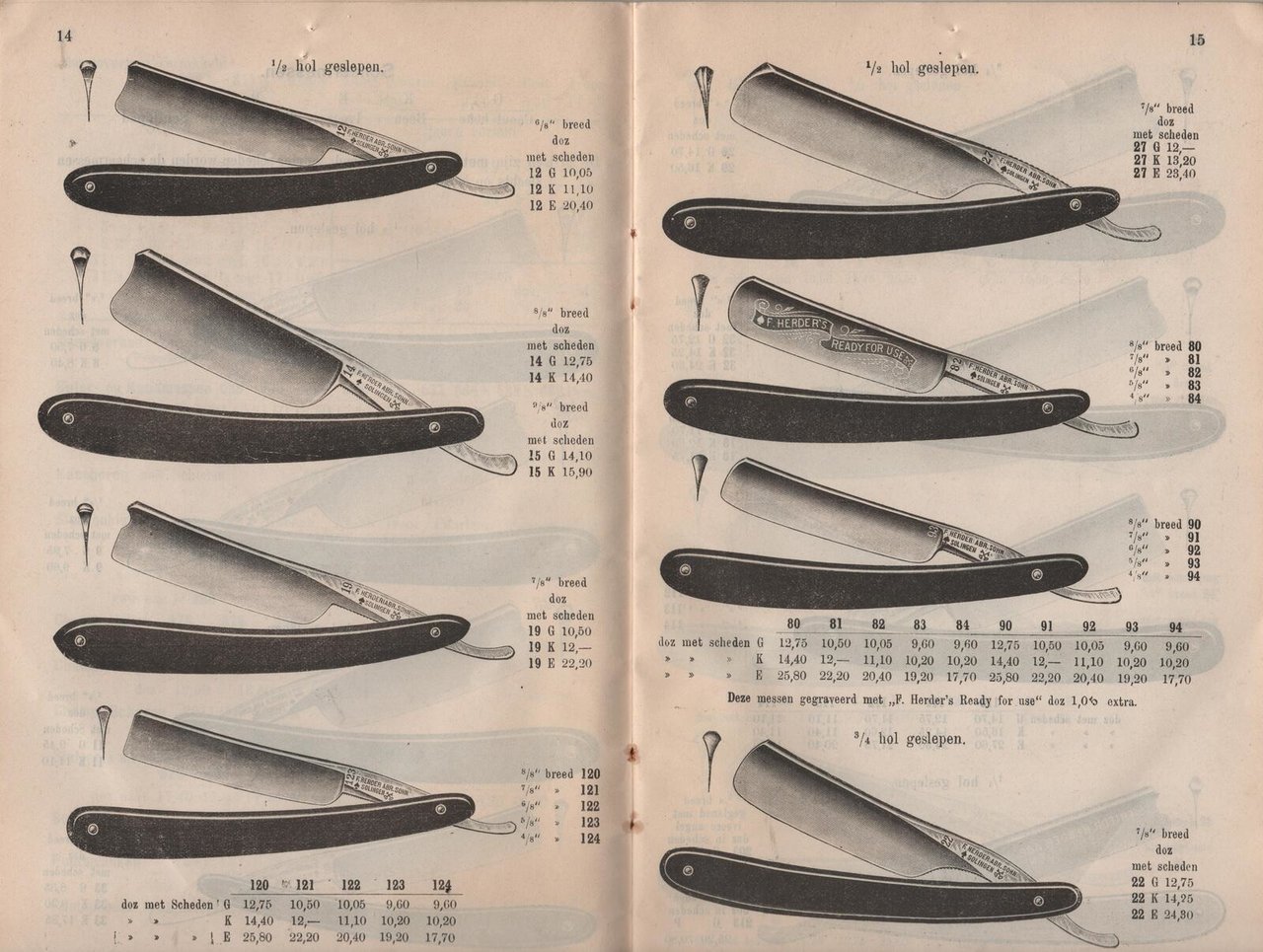 Торговые марки: F. Herder's Real German Hollow Ground (1898 No.34262), La Perla (1899 No.40110), F. Herder's Ready for Use (на ленте) (1903 No.58787), Friedr. Herder Abr. Sohn de echter Herder (1904 No.74797), Constant, Contador, Herder, F. Herder, F. Herder A. Sn, Friedrich Herder Abr. Sohn Solingen, F. Herderstahl Solingen, F. Herders Schopjesmesser (´Нож пикового туза´, датский язык), F. Herders Schopjesscharen, Pick-Ass, Pique-Ass, Schuppen-Ass (´Пиковый туз´), Fortuna, Meevaler, Don Carlos (1932), Spade.