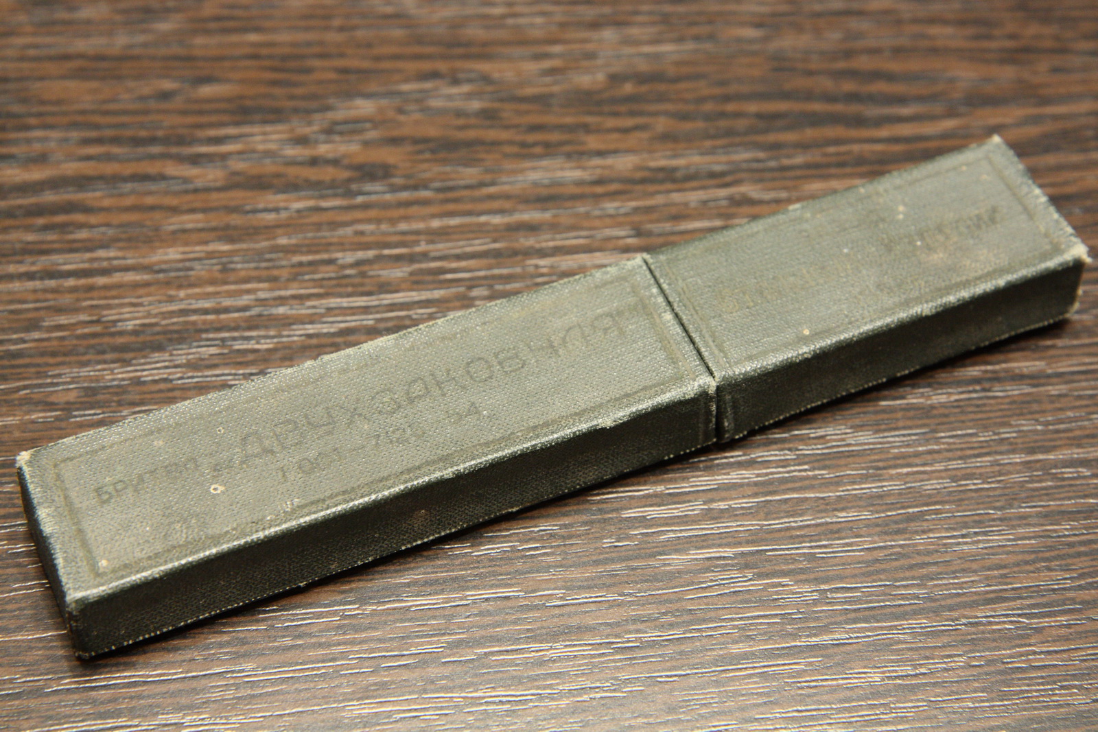 Опасная бритва завода Труд Вача Росинструмент, изготовлена в довоенный период (т.к. в 41 уже начали год на эрле ставить), предположительно 39 - 40 г. Ширина полотна 15.5 мм (с плавным сужением к пятке до 13.5 мм), футляр от СТИЗ. Ручка родная из розоватого пластика, сталь качественная, хорошее удержание кромки, профиль халф холлоу. Бритвы с клеймом "Росинструмент" очень ценятся. Подготовлена мной к бритью, работает отлично, удобная и маневренная. Цена - руб.