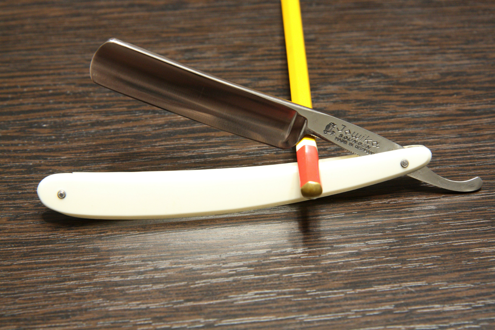 Опасная бритва Jowika, сделана в Германии в г. Золинген, ширина полотна 16,5 мм, ручка из белого пластика, родной футляр, заводская обработка полотна. Ко мне попала в пакетике, никто не брился. 1а Белер сталь - сталь от ведущего мирового металлургического концерна, "Птичка" - уважаемый и известный бренд Золингена. Цена - руб.