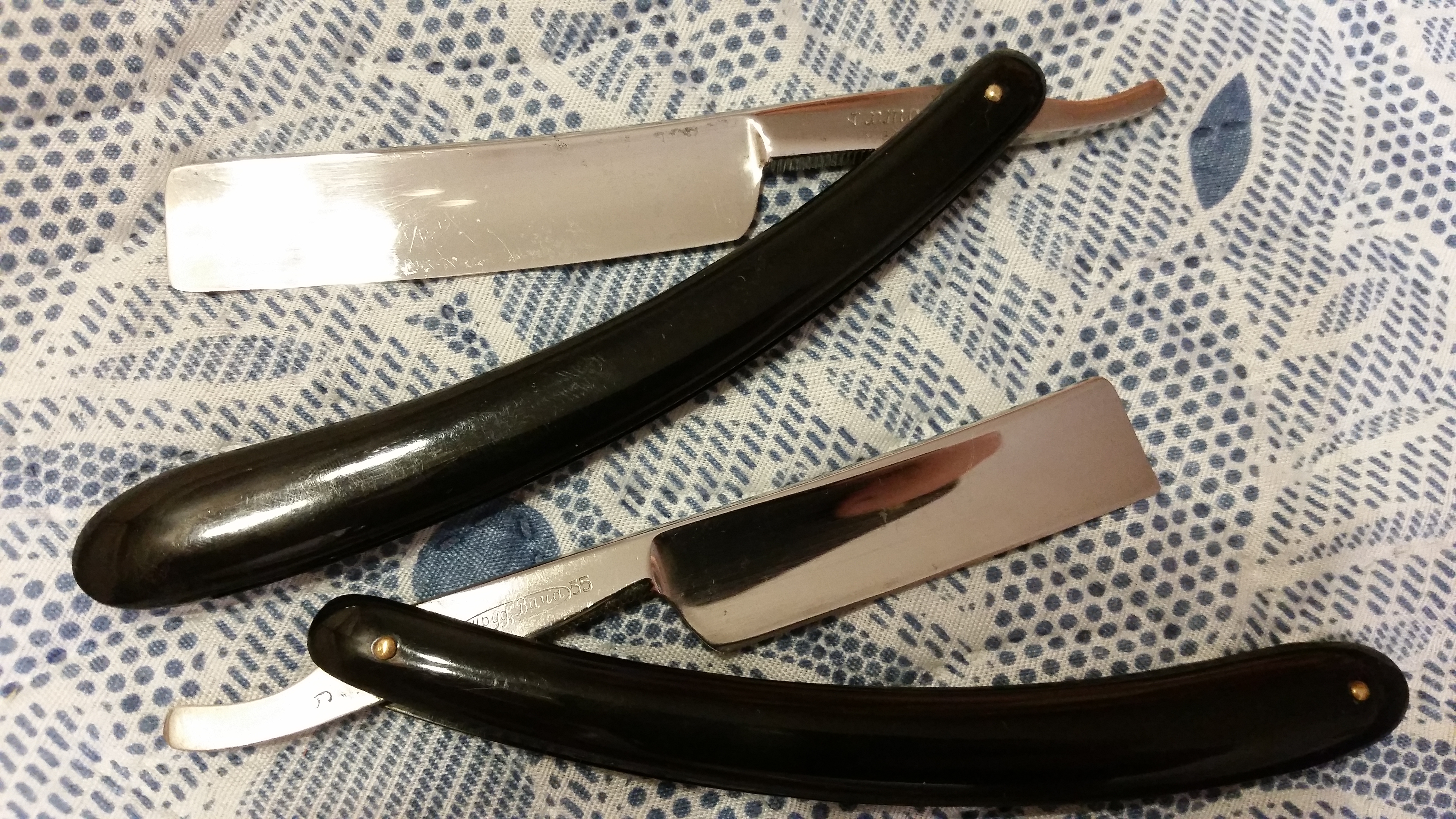 ЗТВ 51 г. Взял из интереса к прозрачной ручке, думал заводская. Но все таки по ходу самопал, но качественный, оргстекло, все обработано, подогнано. Футляр тоже самодел, но сделан хорошо, искус.кожей обит, закрывается идеально. Точилась не вандально, восстановлю ее. Кто то любил эту бритву, раз заморочился с ручкой и футляром