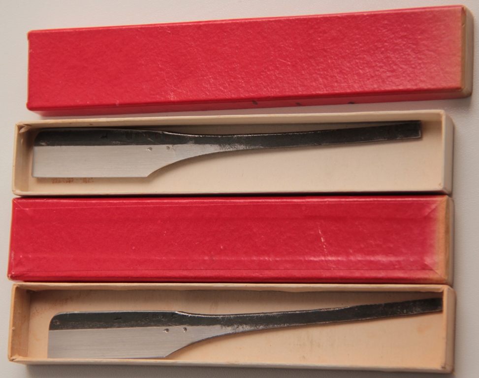 (Что написано на клинках, нужно переводить) Ширина клинков-18.5(19) мм Толщина обушков-5(6) мм Длина РК-43(44) мм Углеродистая ясуки сталь. Обе бритвы в прекрасном состоянии, с едва уловимыми следами пользования. Единственно, что сделал, то немного освежил металл от древней патины. Никакой ржавчины или других видимых дефектов не замечено.Очень неплохие, достойные и совсем бюджетные варианты. Перед отправкой будут заточена и подготовлены к бритью. Цена-4300 р за ШТ, с доставкой ОБЕ ПРОДАНЫ