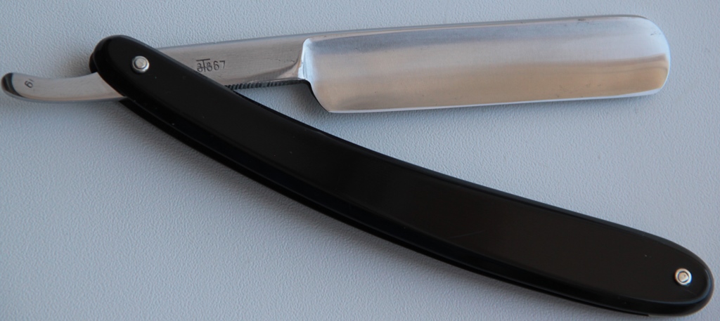 Ширина полотна-20 мм Толщина обушка- 6 мм Полная вогнутость. Кованая углеродистая сталь. Середина 20-го века. По всей видимости бритва изготовлена в Германии для французского рынка. Бритва в очень хорошем состоянии. Немного почистил клинок и поменял пины на качественные, немецкие.Оригинальный дизайн ручки очень приятно смотрится ,а бритва удобно лежит в руке.Тяжёлая.Идеальная геометрия. Сталь и кромка чистые.Бритва отлично подойдёт для новичка, по многим параметрам,а также и для любого бритвомана.Заточена и готова к бритью. Цена 6300 р с доставкой Всё будет ХОРОШО...тел:+79065827134