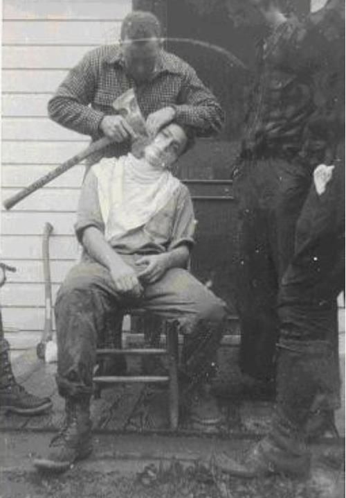 Интересные фото с бритвойАвстралийские лесорубы бреются в Англии, 1941.