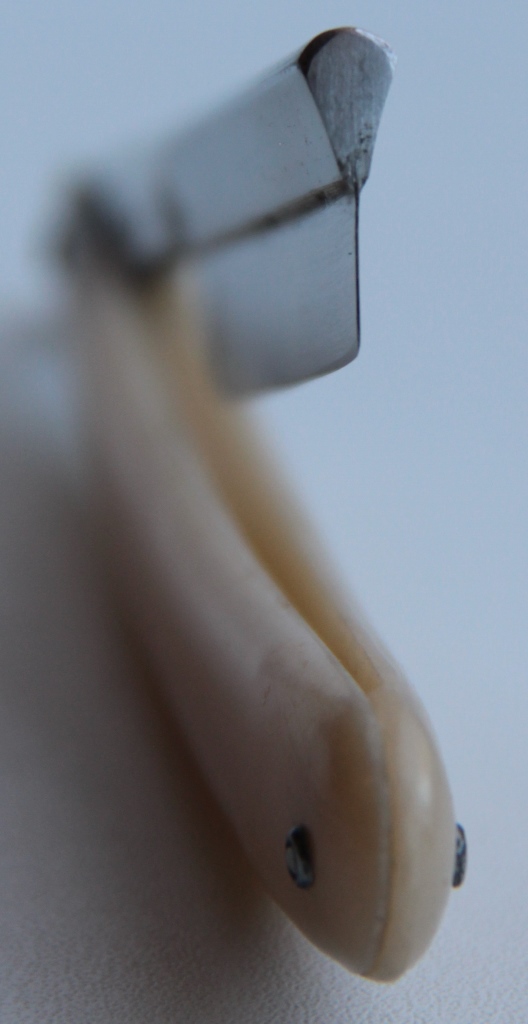 Ширина полотна-20.5 мм Толщина обушка-6.2 мм Полная вогнутость. Нержавеющая сталь-INOX Середина 20-го века. Бритва не разбиралась и не ремонтировалась. Со старой японской парикмахерской. Виден скос пятки, характерный именно для японских барберов.(видимо делали для личного удобства).Бритва в очень хорошем состоянии, с почти родной шириной полотна и минимальными следами износа обушка. Идеальная геометрия, кромочка равномерна по всей длине .Неплохой, недорогой вариант. Заточена и готова к бритью. Цена-3900 р с доставкойПРОДАН