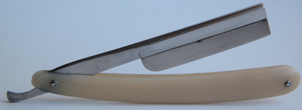 Ширина полотна-20 мм Толщина обушка- 6 мм Полная вогнутость. Кованая углеродистая сталь. Середина 20-го века. По всей видимости бритва изготовлена в Германии для французского рынка. Бритва в очень хорошем состоянии. Немного почистил клинок и поменял пины на качественные, немецкие.Оригинальный дизайн ручки очень приятно смотрится ,а бритва удобно лежит в руке.Тяжёлая.Идеальная геометрия. Сталь и кромка чистые.Бритва отлично подойдёт для новичка, по многим параметрам,а также и для любого бритвомана.Заточена и готова к бритью. Цена 6300 р с доставкой Всё будет ХОРОШО...тел:+79065827134
