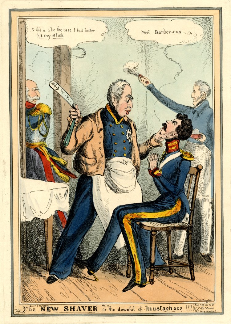 сатирический принт; изготовил Уильям Хит ; опубликовал Томас Маклин; Обратите внимание на бритву, на полотне написано W-R и слева якорь. Ремонт опасных бритв, звонить с 11-00 до 23-00, +79267729357, (whats app, telegram, VK), спросить Олега.