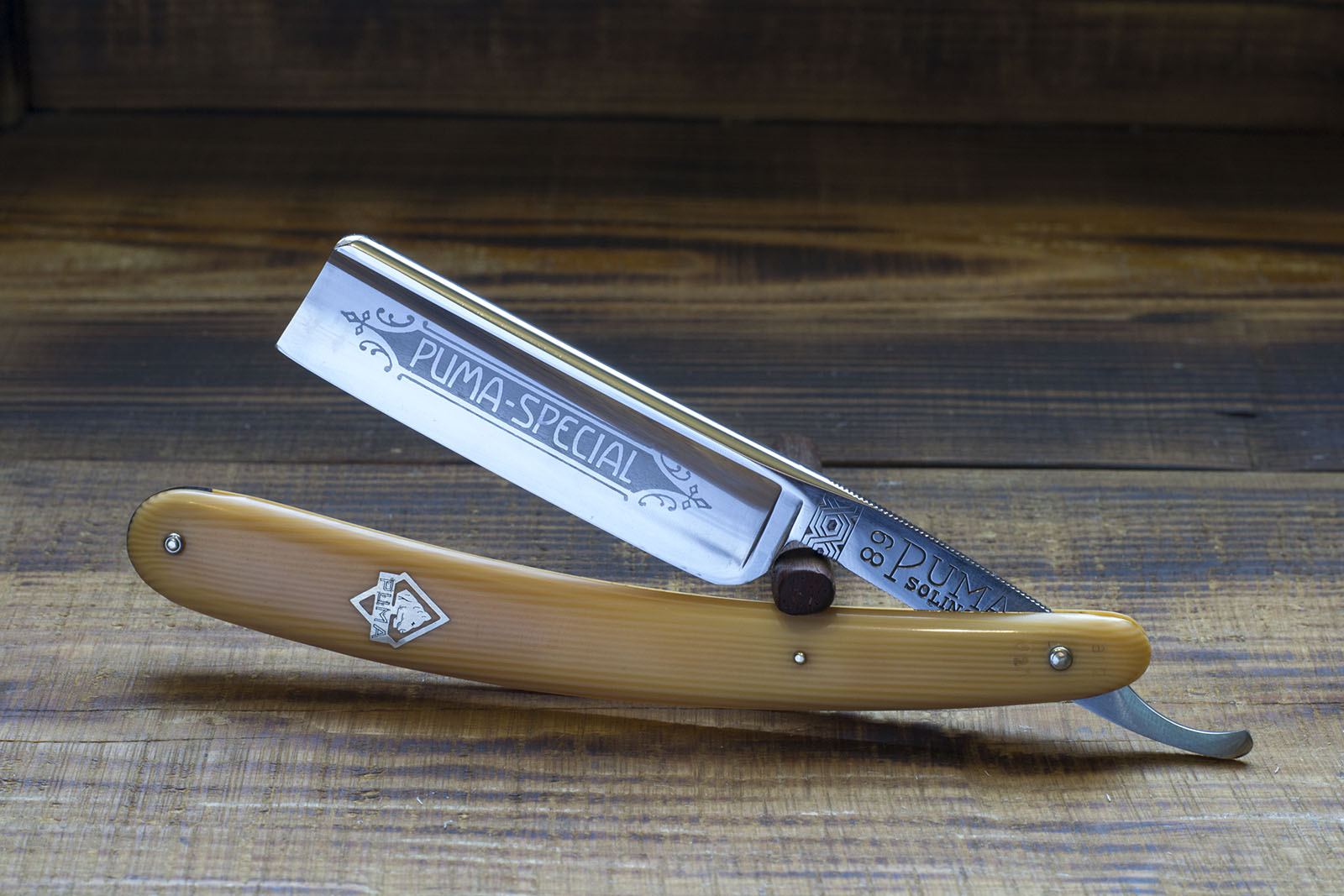 Германская бритва от фабрики с мировым именем Puma-Werk, принадлежавшей семье Lauterjung. Изделия данной фирмы имеют своих почитателей во многих странах мира и ценятся среди коллекционеров за высокое качество и смелый инновационный дизайн, достаточно вспомнить хотя бы 1938 модель, имеющую резинку на эрле для удобства удержания и позолоченое травление с патентной информацией. Данная бритва модели 89 имеет ширину полотна в 21 мм, полную вогнутость и фирменную рукоять из качественного целлулоида, встречающегося только на бритвах Puma. На верхней части рукояти цифрами нанесена информация, очевидно содержащую данные о дате производства бритвы, к сожалению я не встречал способа как правильно расшифовать данный код. Футляр бритвы имеет наклейку с цифрами 89, 6/8 и надписью hohl, что подтверждает его принадлежность именно к этой модели бритвы. Состояние полотна близко к новому, геометрия приктически идеальна, фаска рк тонкая и равномерная, бритва точилась очень мало и аккуратно. Отдельно стоит упомянуть качество стали, оцениваю его как крайне высокое и исключительно подходящее для бритв с полной вогнутостью . Бритва заточена и готова к бритью. Продано 89 Show