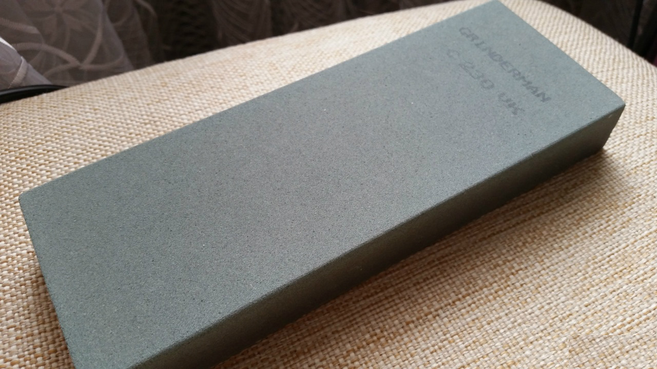 Абразивный брусок отечественного производства Grinderman C230VK, зернистость F230, карбид кремния, размер 200х75х25 мм, для предварительной грубой заточки (например, снимать много "мяса" в ходе начальной стадии заточки кривой бритвы, но без выхода на кромку или для ножей/столярки/топоров), работает с водой, в использовании не был, новый. Цена - руб.