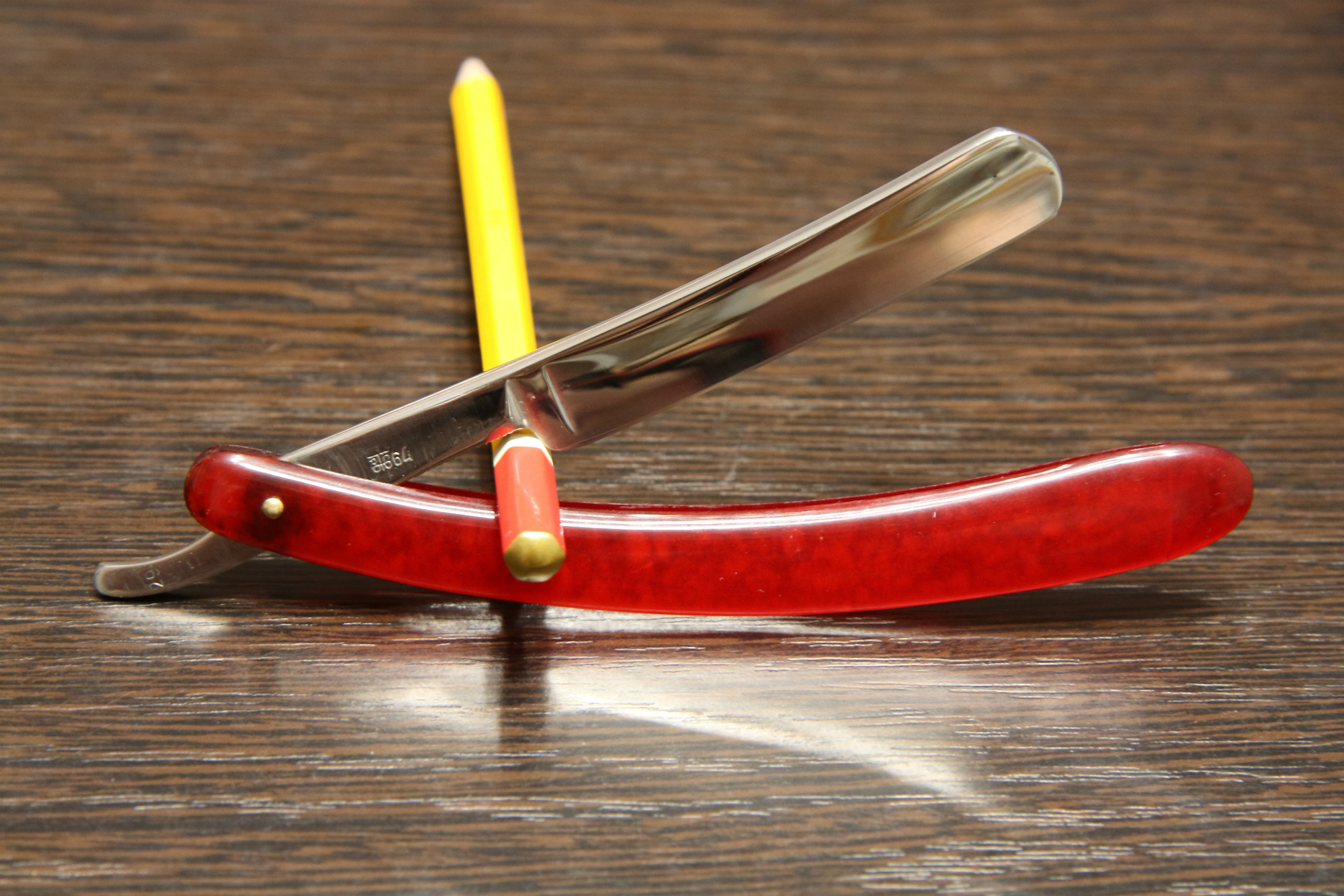 Опасная бритва Двухзаковная, завод СТИЗ, 1958 год. Ширина полотна 17 мм, легкая улыбка, ручка под янтарь, родной футляр. Ко мне попала с заводской заточкой (не пользованная), затачивалась мной впервые (подготовлена к бритью), полотно почистил от следов времени (кое что осталось, но не критично). Двухзаковная это двойная выборка, обеспечивающая легкость заточки/правки и дающая эффективное бритье. Цена - руб.