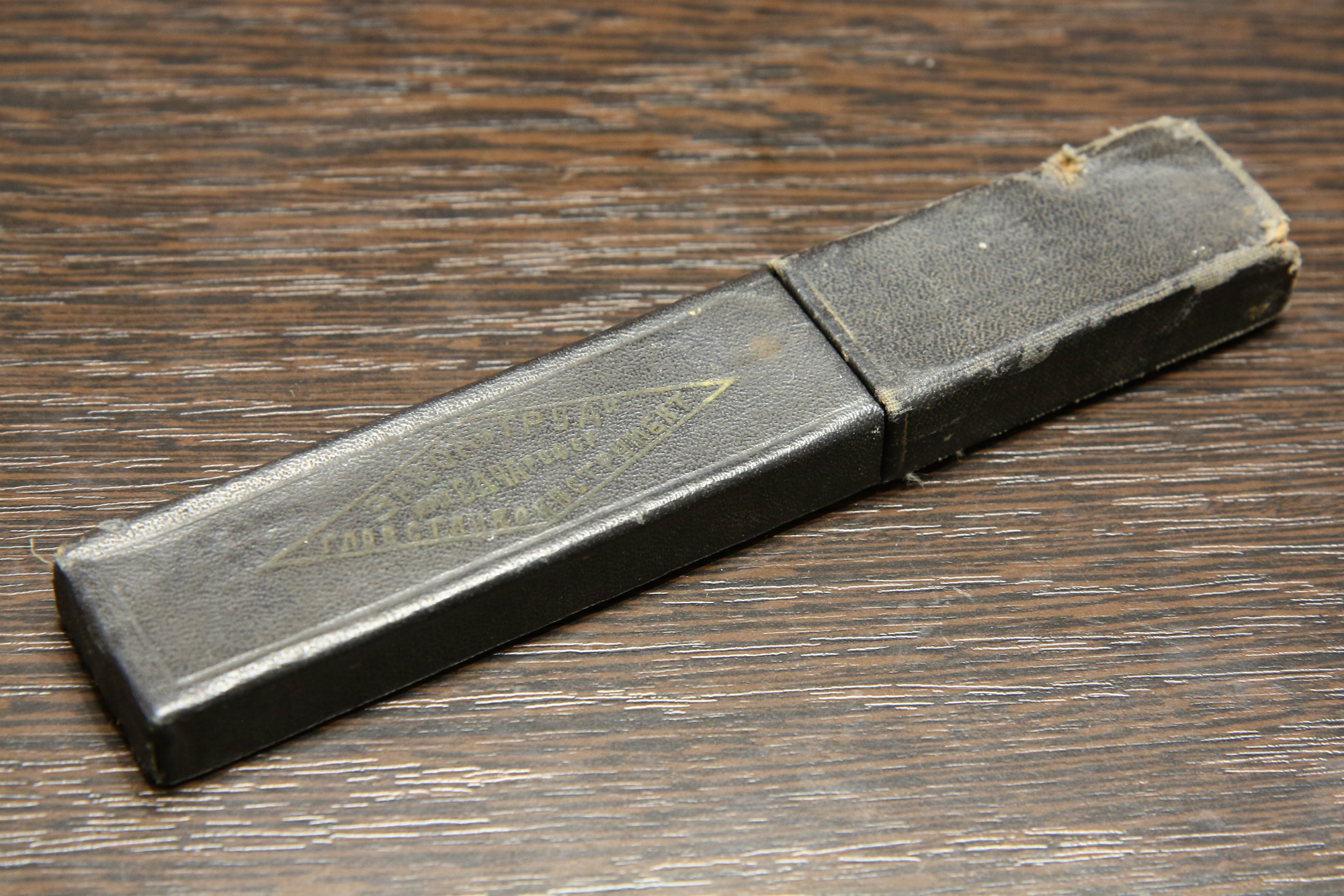Опасная бритва завода Труд Вача Росинструмент, изготовлена в довоенный период (т.к. в 41 уже начали год на эрле ставить), предположительно 39 - 40 г. Ширина полотна 15.5 мм (с плавным сужением к пятке до 13.5 мм), футляр от СТИЗ. Ручка родная из розоватого пластика, сталь качественная, хорошее удержание кромки, профиль халф холлоу. Бритвы с клеймом "Росинструмент" очень ценятся. Подготовлена мной к бритью, работает отлично, удобная и маневренная. Цена - руб.