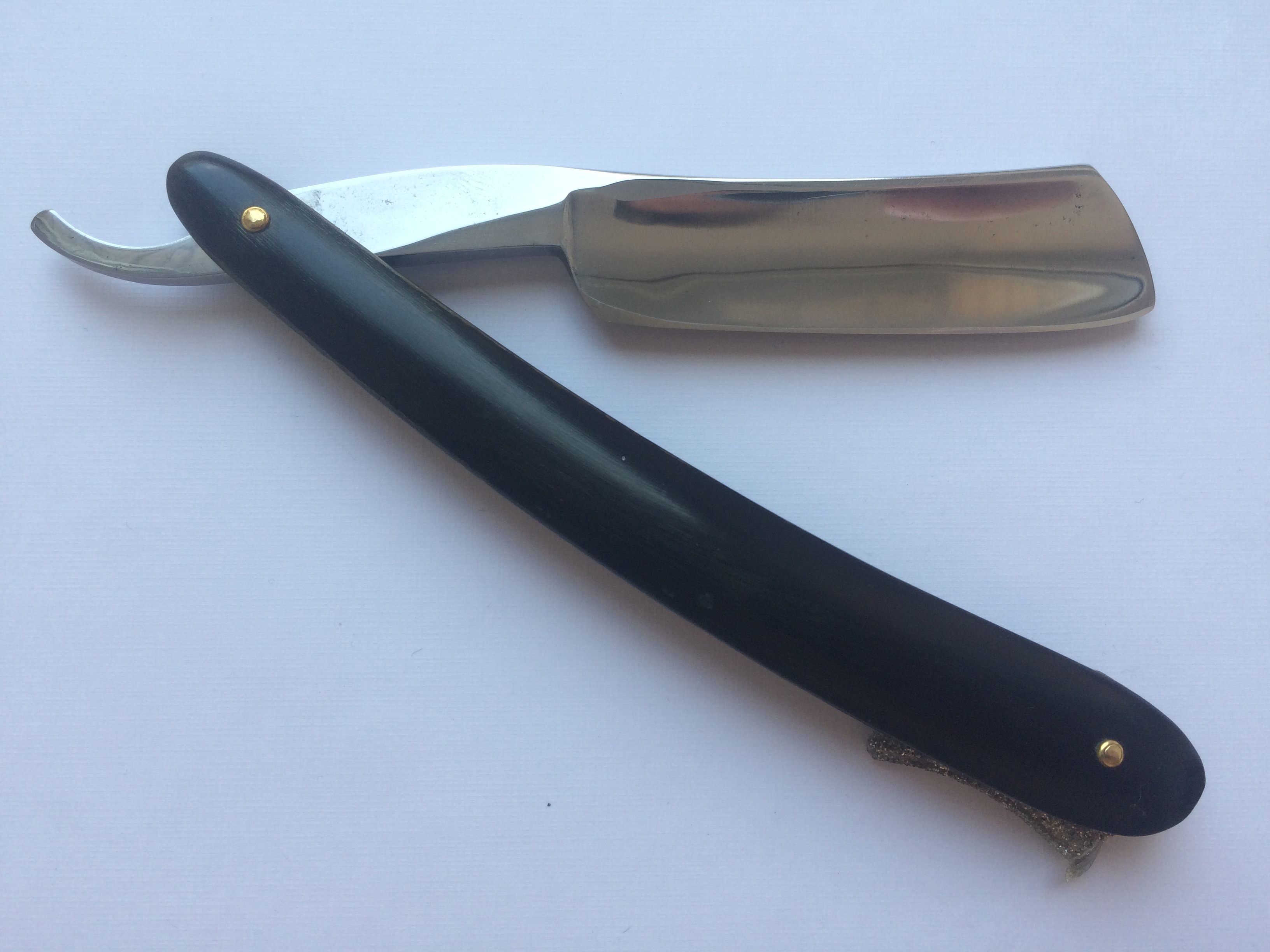 Насколько я знаю, это старая английская бритва из Шеффилда. По словам продавца, это конец 19 века. Но почему она такая "толстая", семь с небольшим мм, я имею в виду толщина обуха? Интересует примерный возраст и стоимость. Рукоять из рога, всего одна небольшая трещинка у пина. Да и вообще, накидайте информации побольше!