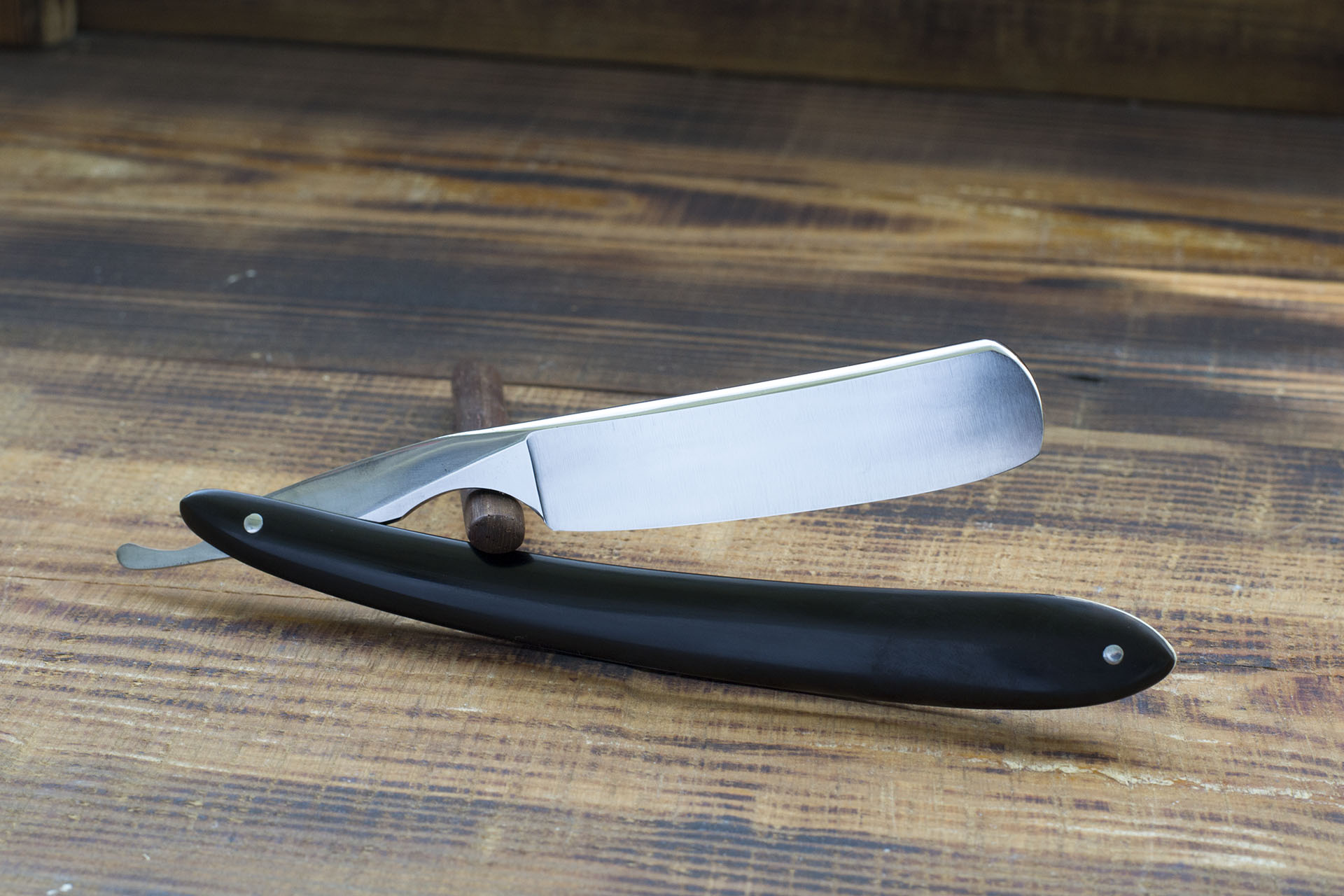 Мощный французский клин от Vincent et Pény, торговой марки I.C. Vincent. Данные бритвы всегда радуют постоянством качества и оригинальной формой полотна, присущей бритвам старой Франции. При реставрации удалось полностью сохранить все оригинальные атрибуты, плоскую роговую рукоять, костяной клинышек и конусные латунные шайбы, встречающиеся лишь на антикварных французских бритвах. Максимальная ширина полотна 22 мм (7/8), массивный обух плавно расширяется к носику, достигая ширины в 6 мм., отличная геометрия, фаска режущей кромки тонкая и равномерная. Бритва изготовлена из качественной углеродистой стали, на мой взгляд одной их лучших. Полотно имеет легкую улыбку и парикмахерский вырез, деталь, делающая бритву гораздо более привлекательной внешне. Так же к достоинствам полотна можно отнести глубокое ударное клеймо на эрле. Очень часто бритвы марки I.C. Vincent имеют неглубокое или неравномерное клеймо, которое частично утрачивалось еще при первичной шлифовке полотна на фабрике. Ориентировочно, бритва изготовлена во второй половине 19 века. Заточена и готова к бритью. Продано vincent Show