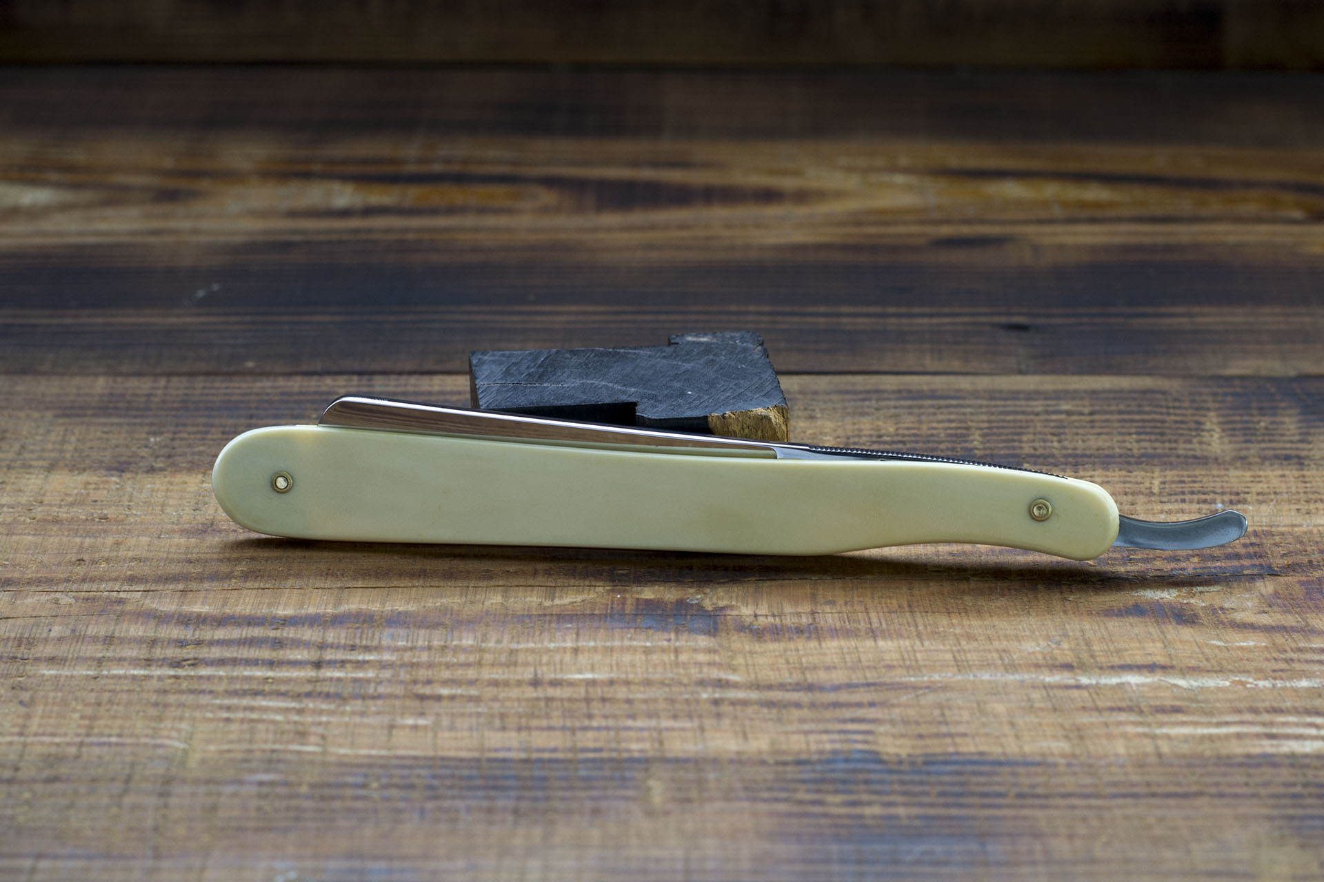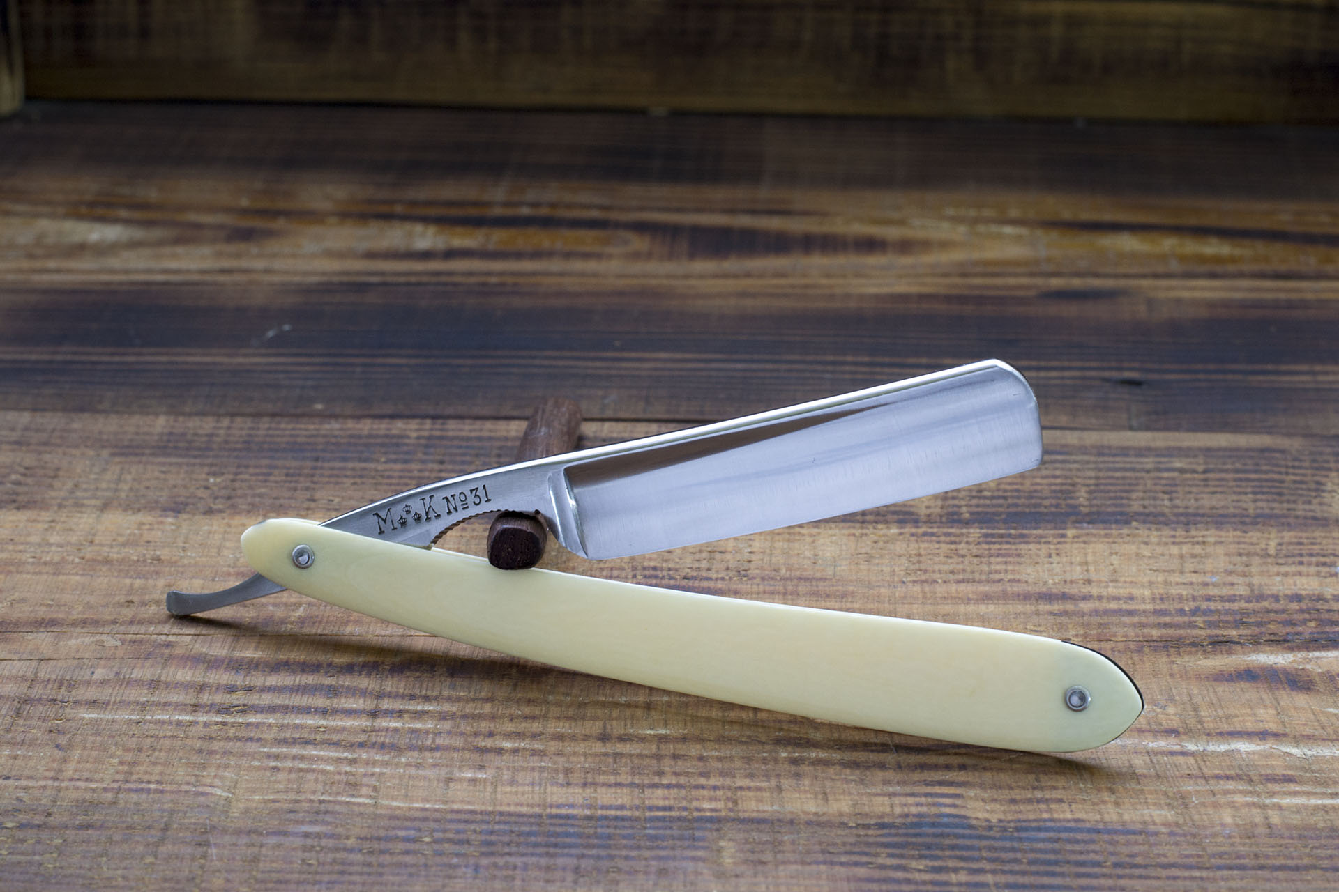 Бритва от наиболее почитаемого шведского производителя Carl Victor Heljestrand, ведущего свою историю с 1810 года, когда Alderman Olof Heljestrand основывает свою фабрику, на которой в дальнейшем и трудился юный Carl Victor. Впоследствии фабрика заработала свою репутацию, выходящую далеко за пределы Швеции, безупречным качеством продукции,а так же изысканностью форм и материалов. Но на мой взгляд основополагающими факорами в определении качества и приобретении репутации данной фирмы являлись именно потребительские свойства их товаров. Я знаком лишь с бритвами, но с уверенностью могу сказать, что сталь и ее термообработка закладывают великолепные режущие свойства в данные изделия, кроме того, я практически не встречал бритв от Карла Виктора, страдающих дефектами геометрии. Данная бритва имеет ширину в 17 мм, модель номер 31, сделанная для Kindal, France. Снабжена рукоятью из слоновой кости, текстура которой завораживает. Сталь и геометрия выше всяческих похвал, вогнутость полная. Бритва заточена и готова к бритью. Продано 31 Show