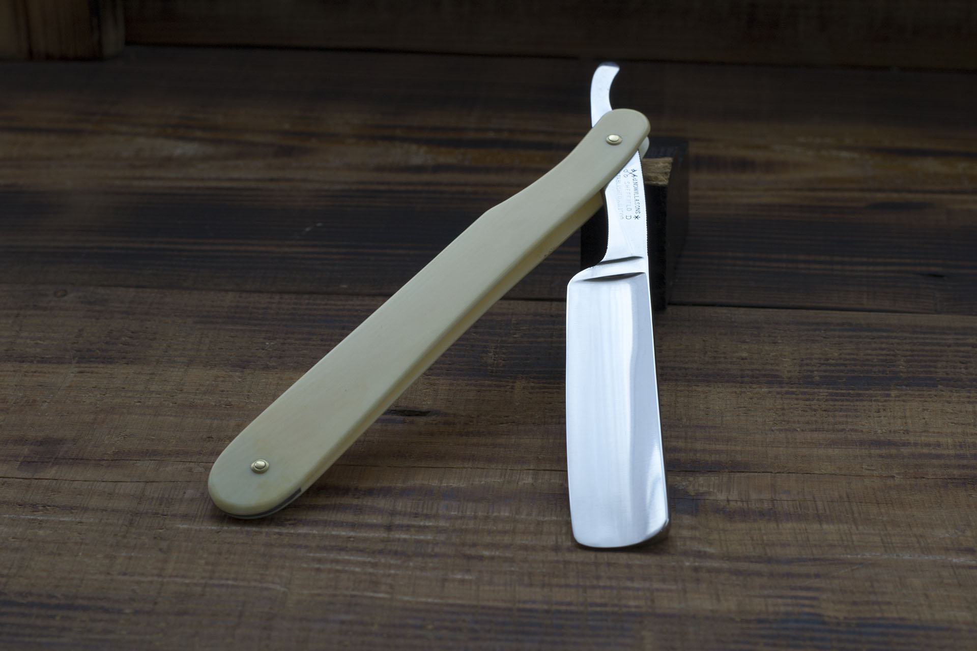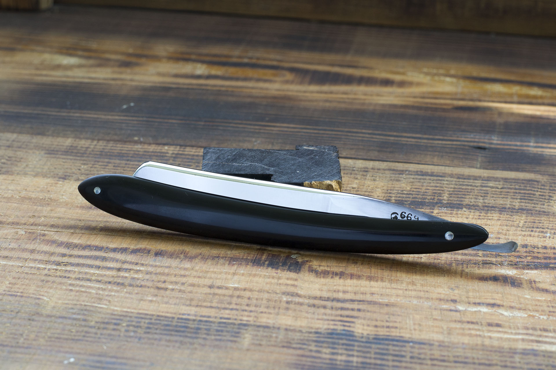 Бритва от наиболее почитаемого шведского производителя Carl Victor Heljestrand, ведущего свою историю с 1810 года, когда Alderman Olof Heljestrand основывает свою фабрику, на которой в дальнейшем и трудился юный Carl Victor. Впоследствии фабрика заработала свою репутацию, выходящую далеко за пределы Швеции, безупречным качеством продукции,а так же изысканностью форм и материалов. Но на мой взгляд основополагающими факорами в определении качества и приобретении репутации данной фирмы являлись именно потребительские свойства их товаров. Я знаком лишь с бритвами, но с уверенностью могу сказать, что сталь и ее термообработка закладывают великолепные режущие свойства в данные изделия, кроме того, я практически не встречал бритв от Карла Виктора, страдающих дефектами геометрии. Данная бритва имеет ширину в 17 мм, модель номер 31, сделанная для Kindal, France. Снабжена рукоятью из слоновой кости, текстура которой завораживает. Сталь и геометрия выше всяческих похвал, вогнутость полная. Бритва заточена и готова к бритью. Продано 31 Show