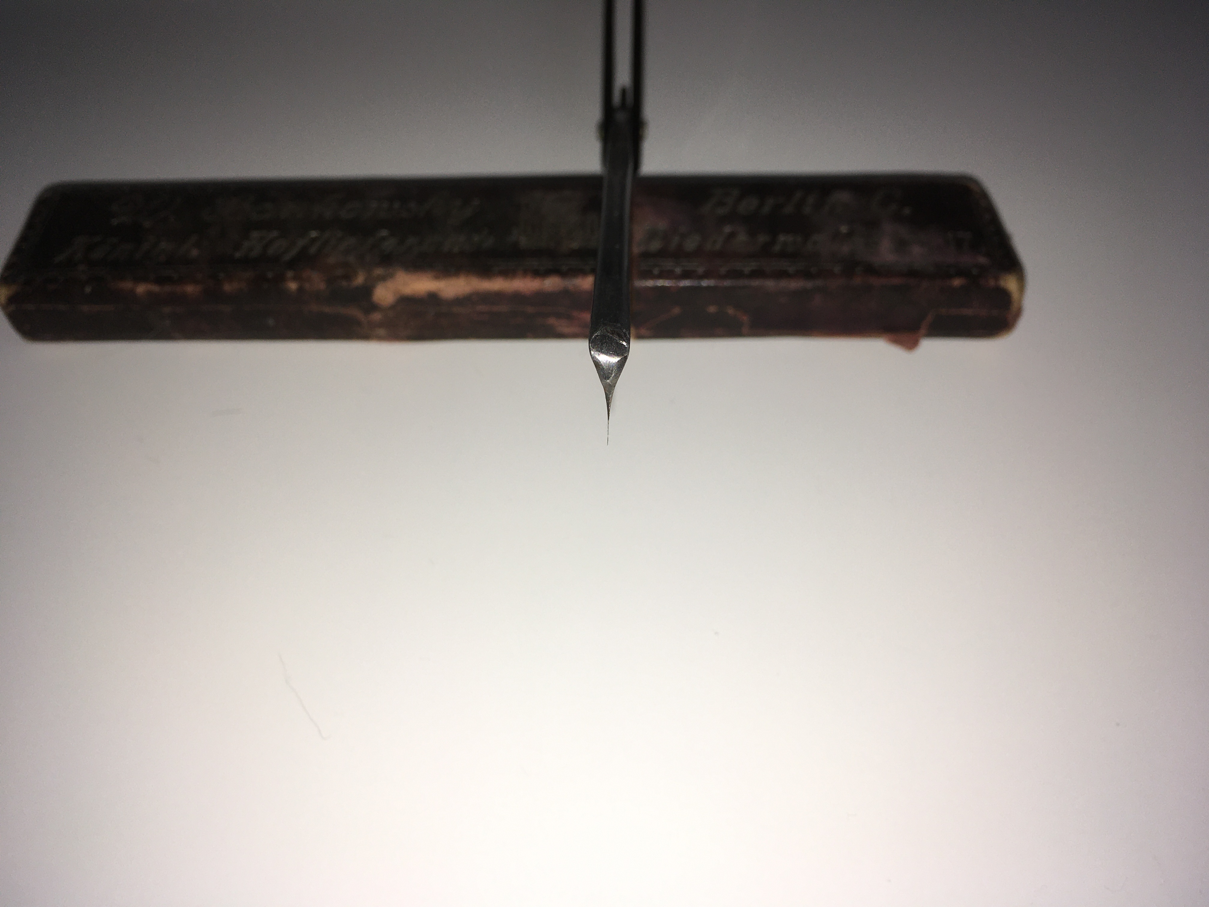 С опасными бритвами я не так давно. Недавно решил взять что-нибудь на блошином рынке на поиграться для восстановления и заточки. Нашел бритву достаточно сточенную уже, но вроде живую. Немного привел в чувство. Теперь стало интересно можно ли примерно определить период выпуска. Коробка скорее всето не родная - зеленая, Solingen и надпись Durex двойная. На самой бритве ничего кроме Silberstahl Solingen нет. С подводов убрана вся коррозия, заточена для бритья. Посмотрим как будет держать заточку, так как были предположения, что давно над ней поработали очень грубо. Когда отчистил пастой стали заметны очень грубые риски. Насколько понимаю, без клейма говорить о производителе бесполезно. Может хоть период времени... Ручка уж больно хлипкая - тонкий целлулоид с просветкой в нескольких местах "под янтарь". Бритва шелестит почище моей новой Дова прима.