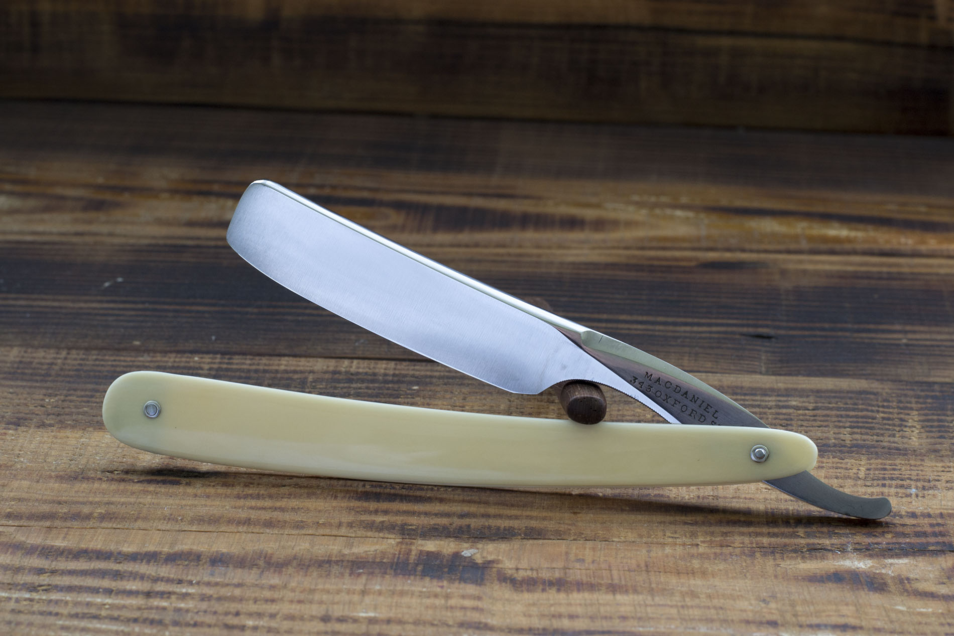 Пара английских клинов от Charles Macdaniel, производителя с многолетней историей, работавшего в Лондоне, к счастью, кроме бритв Макдэниел производил так же столовые приборы и складные ножи, поэтому кто то из любителей истории с сайта оценки штопоров, разместил довольно полные данные о работе Charles Macdaniel в статье https://www.corkscrewappraisals.com/res ... _macdaniel Исходя из этих сведений, данная пара произведена после 1823 года, именно тогда Макдэниел сменил адрес мастерской на 343 Oxford Street. К сожалению, самобытная форма полотен и хорошо сохранившаяся слоновая кость на рукоятях не дают предположить более конкретную дату производства, но ориентировочно это 1823- 1851 гг. Бритвы достались мне в превосходном состоянии, практически без следов заточки, необходимость регринда была вызвана небольшими очагами коррозии. на полотне и эрле. Формы полотен очень нестандарные для Англии того времени, а некоторые более старые образцы в своем стиле копируют французские бритвы 10-20-х годов 19 века. Великолепные экземпляры от самобытного и разностороннего производителя, массивный обух обеспечивает правильный угол заточки, ширина полотен 19мм. При пристальном рассмотрении видны некторые разлличия между бритвами пары, это обуславливается полностью ручным производством и придает изделиям дополнительный шик. Бритвы заточены и готовы к использования, родной кейс на 2 места в комплекте. Заинтересовынным в покупке, могу прислать несколько фото изначального состояния клинков до реставрации. продано 343 Show