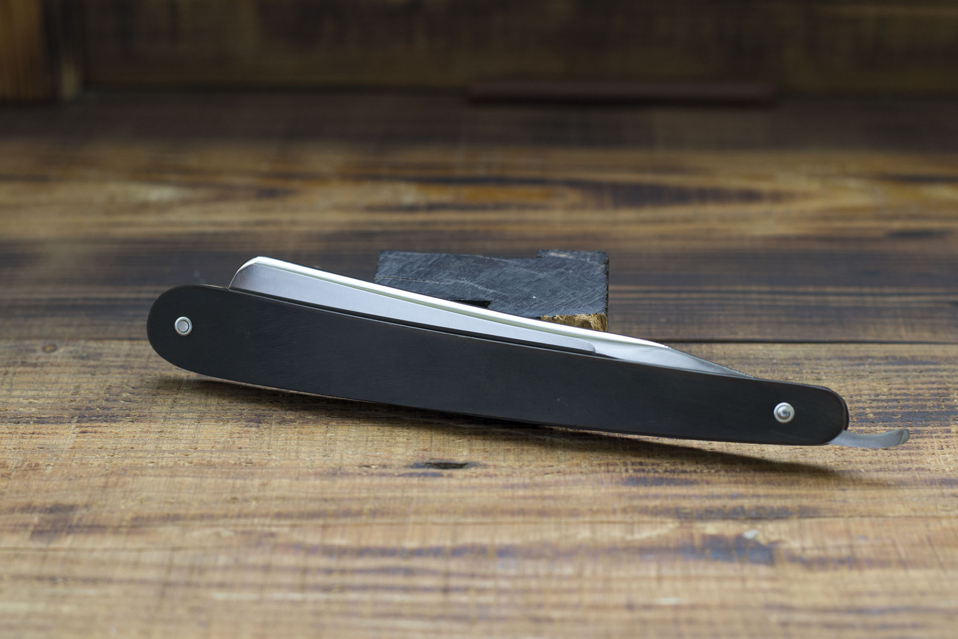 Традиционный французский клин, торговой марки 82, изначально принадлежавшей Sannajust Chabanne, первичная регистрация относится к 1833 году, производство располагалось в городе Тьер и вероятно было не крупным. Позднее владельцем марки стал Boyer Chabanne, именно его имя стоит на эрле бритвы. Это обстоятельство позволяет предположить что вероятная дата выпуска - 60-70 гг. 19 века. Кроме того на эрле бритвы стоит клеймо Medaille, что говорит о высокой оценке качества изделий на ежегодной выставке в городе Тьер. Теперь немного слов о самой бритве. Форма полотна традиционно французская, но эрль имеет легкую горбинку, что придает бритве особенно приятный вид, ширина 18.5 мм (11/16+) Сталь произвела очень хорошее впечатление, это все та же французская углеродка середины 19 века, которая в принципе не бывает плохой, если речь заходит о бритвах. Геометрия полотна так же хороша и не претерпела значительных изменений со дня выпуска, фаска режущей кромки тонкая и равномерная. Бритва имеет традиционный сатин на полотне, он достаточно грубый, как и было изначально. Редкий, раритетный экземпляр, способный дополнить любую коллекцию или стать отличной бритвой для новичка. Заточена и готова к юритью. Продано 82 Show