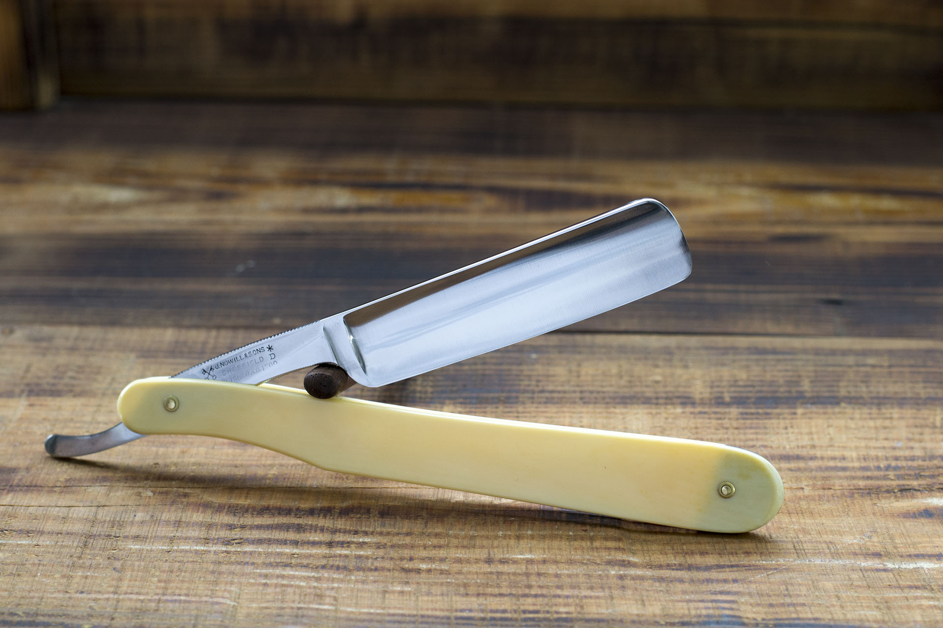 Опасная бритва от знаменитого английского производителя John Nowill торговой марки Krosskeys. Бритва имеет полную вогнутость, ширина полотна 17.5 мм., оригинальная рукоять из слоновой кости имеет самобытную форму, показавшуюся мне крайне удобной при удержании бритвы, так как сужение оправы в районе эрля освобождает дополнительное место для пальцев, так же надежному хвату способствует двустороняя насечка и подпальцевый вырез. Бритва изготовлена из качественной английской углеродистой стали, геометрия хороша, но не идеальна, присутствуют локальные расширения фаски режущей кромки, что в принципе нормально для шеффилдских бритв с вогнутостью. Бритва предположительно не была в использовании, обух не имел следов заточки, а фаска рк была едва заметна, но не сведена, это является характерным признаком заводской заточки. Бритва заточена и готова к бритью. Несколько слов о производителе. Торговая марка Krosskeys ( Скрещенные Ключи) стала собственностью фирмы в 1842 году, до этого основной торговой маркой фирмы была D* именно к основанию фирмы в 1700 году и получению данной торговой марки относится надпись Established a.d. 1700. Кстати торговая марка D* так же присутствует на обратной стороне эрля бритвы. Из значительных достижений фирмы можно назвать получение приза на The Great Exhibition of the Works of Industry of All Nations в 1851 году в Лондоне, это была действительно значимая Выставка, в которой принимали участие множество стран, представляя лучшие достижения различных секторов промышленности. Продано Spoiler Show