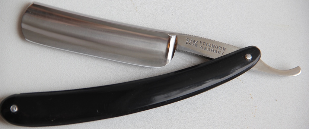 Бритва SOLINGEN Ширина полотна-20.5 мм Толщина обушка-6.2 мм Полная вогнутость. Углеродистая сталь. Примерно 60-е года производства. Бритва непользованная, не имеющая следов от заточных камней на обушке, уточки полотна и других дефектов при эксплуатации.Сам клинок мощный. Можно увидеть отчетливую "ступеньку" при переходе от вогнутости полотна до района кромки, в связи с чем жало бритвы не эластичное, как на бритвах с полной вогнутостью, а имеет достаточную жесткость. Сталь твердая при заточке. Сам клинок не подвергался никаким работам:имеет оригинальную шлифовку и полировку. Единственно что сделал, поменял кривой осевой пин, сохранив родные шайбы.В общем и целом бритва очень достойная, с отличной сталью,тяжелая. Могу рекомендовать как новичкам, так и опытным пользователям, особенно тем, кто имеет жесткую щетину. Заточена и готова к бритью. Цена-8500 р с доставкой. ПРОДАН Spoiler Show