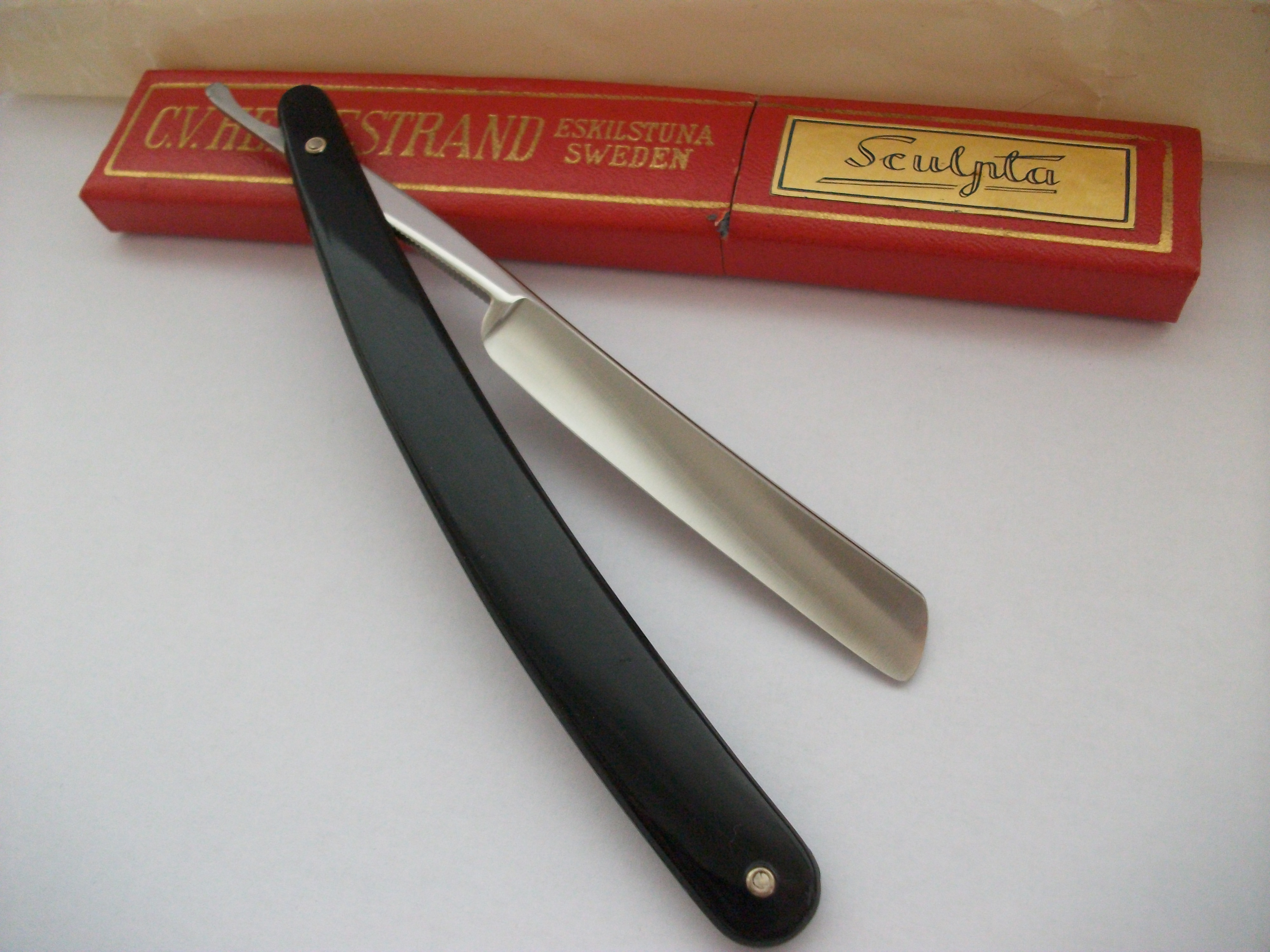 C.V.Heljestrand Абсолютное новье, лично снял пломбу при открытии коробочки. Узкая бритва из углеродистой стали, ширина полотна 11мм, ручка пластик. По желанию может быть заточена - включено в стоимость. Продано. Spoiler Show
