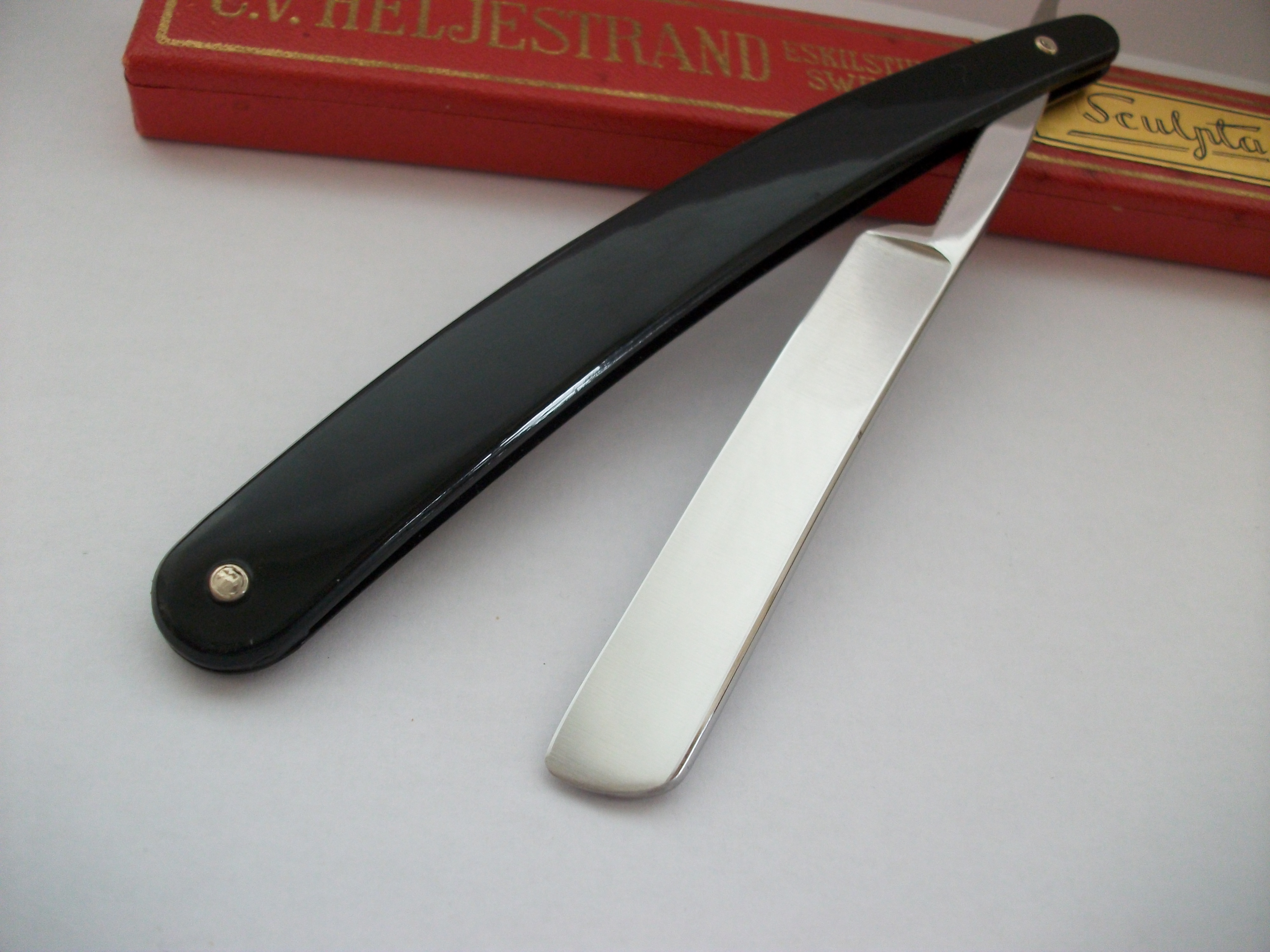 C.V.Heljestrand Абсолютное новье. Узкая бритва из углеродистой стали, ширина полотна 11мм, ручка пластик. Заточена и готова к бритью. Продано Spoiler Show