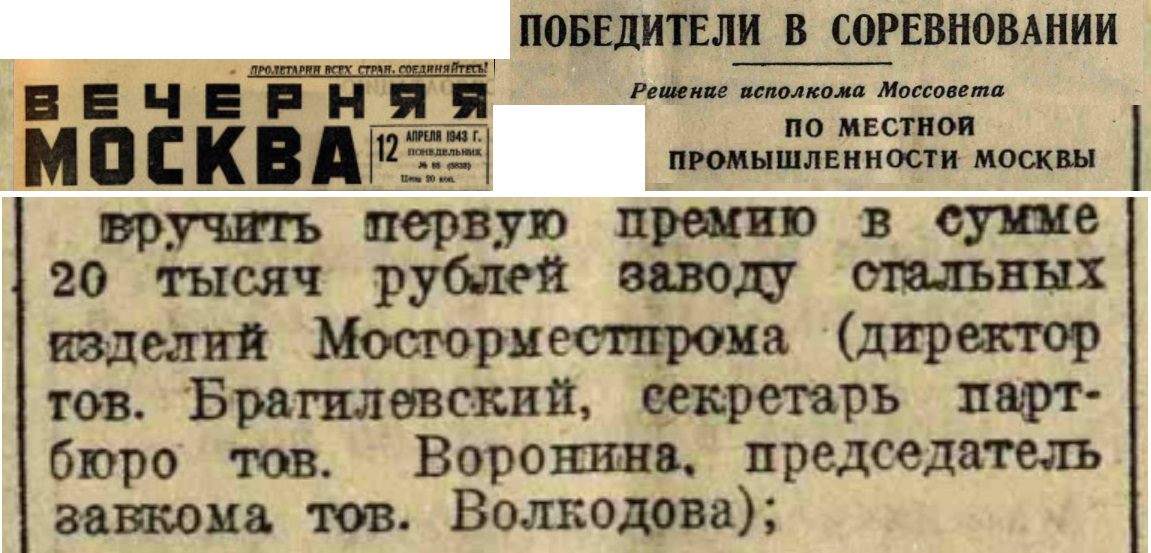 15 января 1952 года в газете "Вечеряя Москва" вышла большая статья о заводе Стальных Изделий.