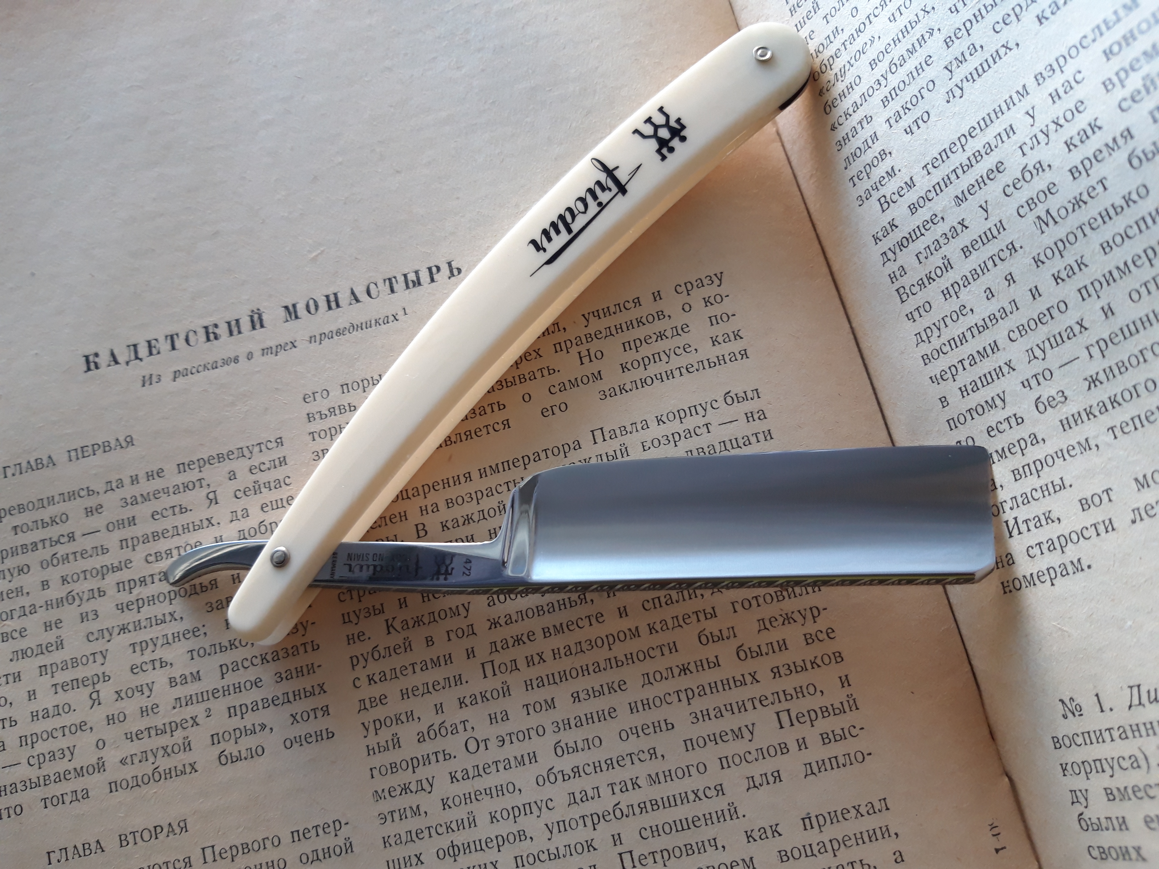 Уточки, от себя скажу, что такой экземпляр, сейчас очень редко встретишь, тем более в таком состоянии. 22мм, все заводское. Доп. Фото в личку. Продано. 2. viewtopic.php?f=7&t=4660&start=200#top Прекрасный образец именитого производителя, 24.5 мм. Не тронут гриндом и т.д. клинышек олово. Фото делал специально в таком ракурсе и при таком освещении, дабы были видны крохотные грехи времени. Считаю, что данный экз. Отличается особой ценностью. Заточен дядюшкой Фантомас. Продано. 3. Набор, за аналогом которого долго гонялся.. viewtopic.php?f=28&t=7128#top Под реставрацию. Будет конфетка. Защелка и тд, все работает. Ручка с родными заклепками, все родное. Форма вогнутости - клин. Продано.