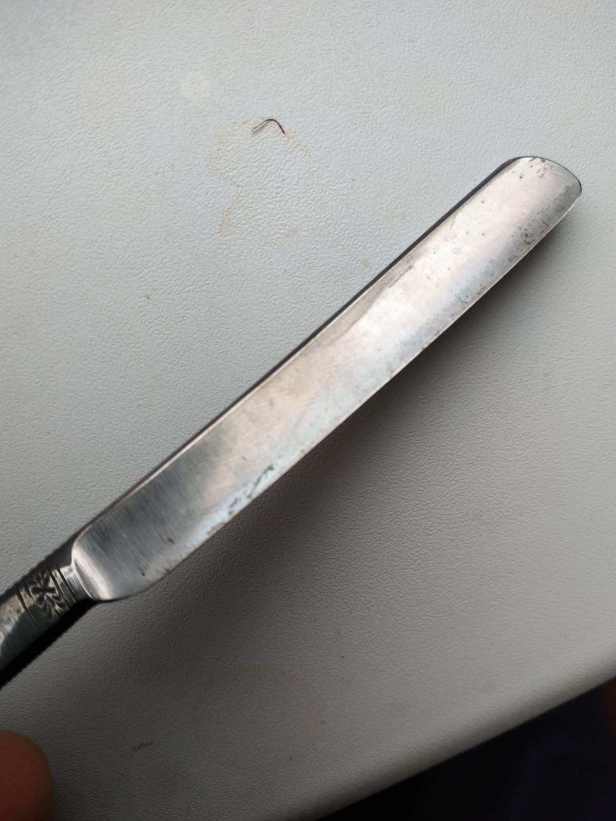 W. Wanke OberleutensdorfУ меня есть бритва похожих форм точно с таким же узорчиком. Виг, когда он еще тут был, писал что это характерно именно немецким бритвам начала 20 века Полотна не видно, что там вообще. Но по моему оно узкое. Коллекц. ценности нет, но может можно восстановить и бриться