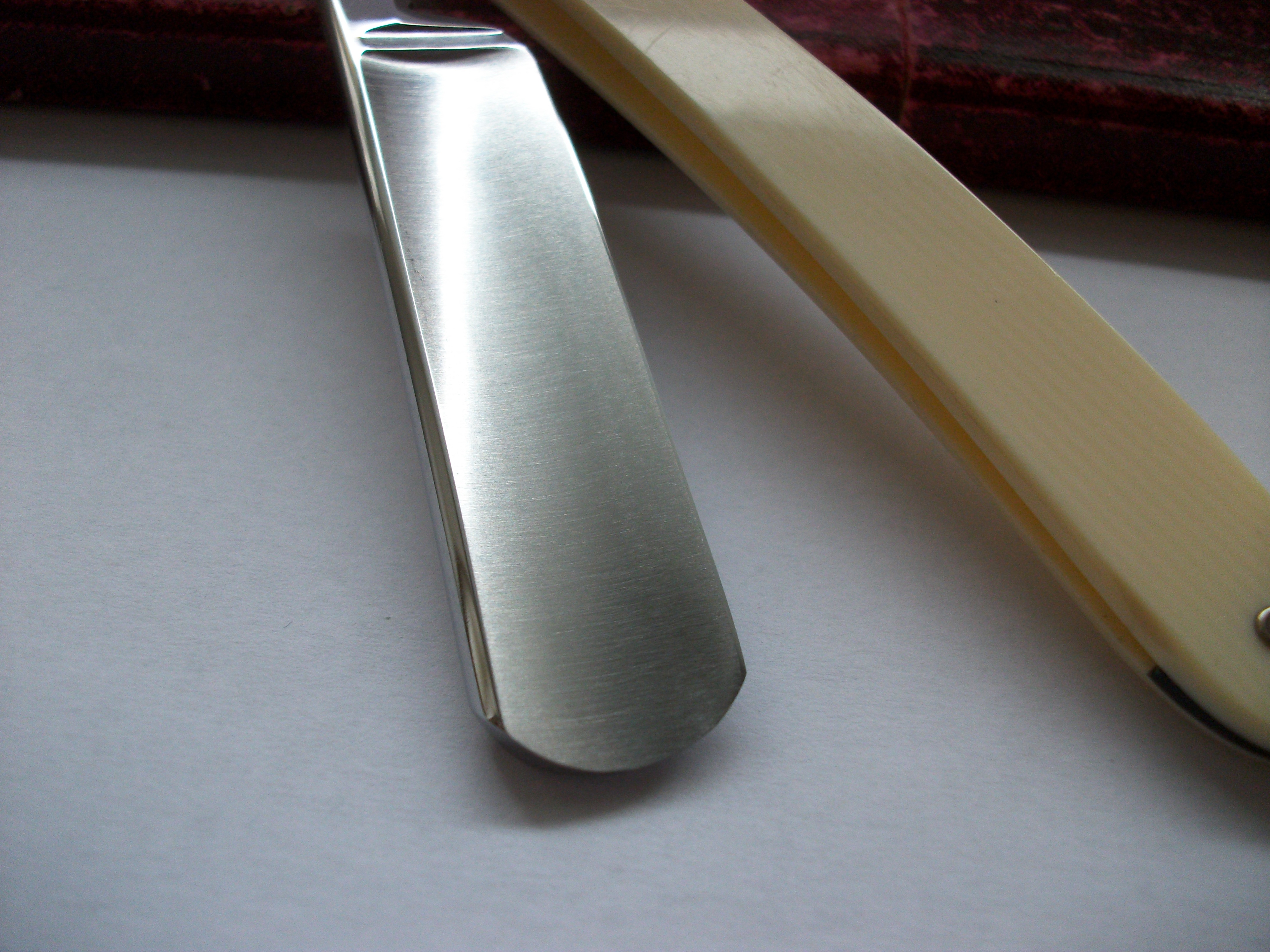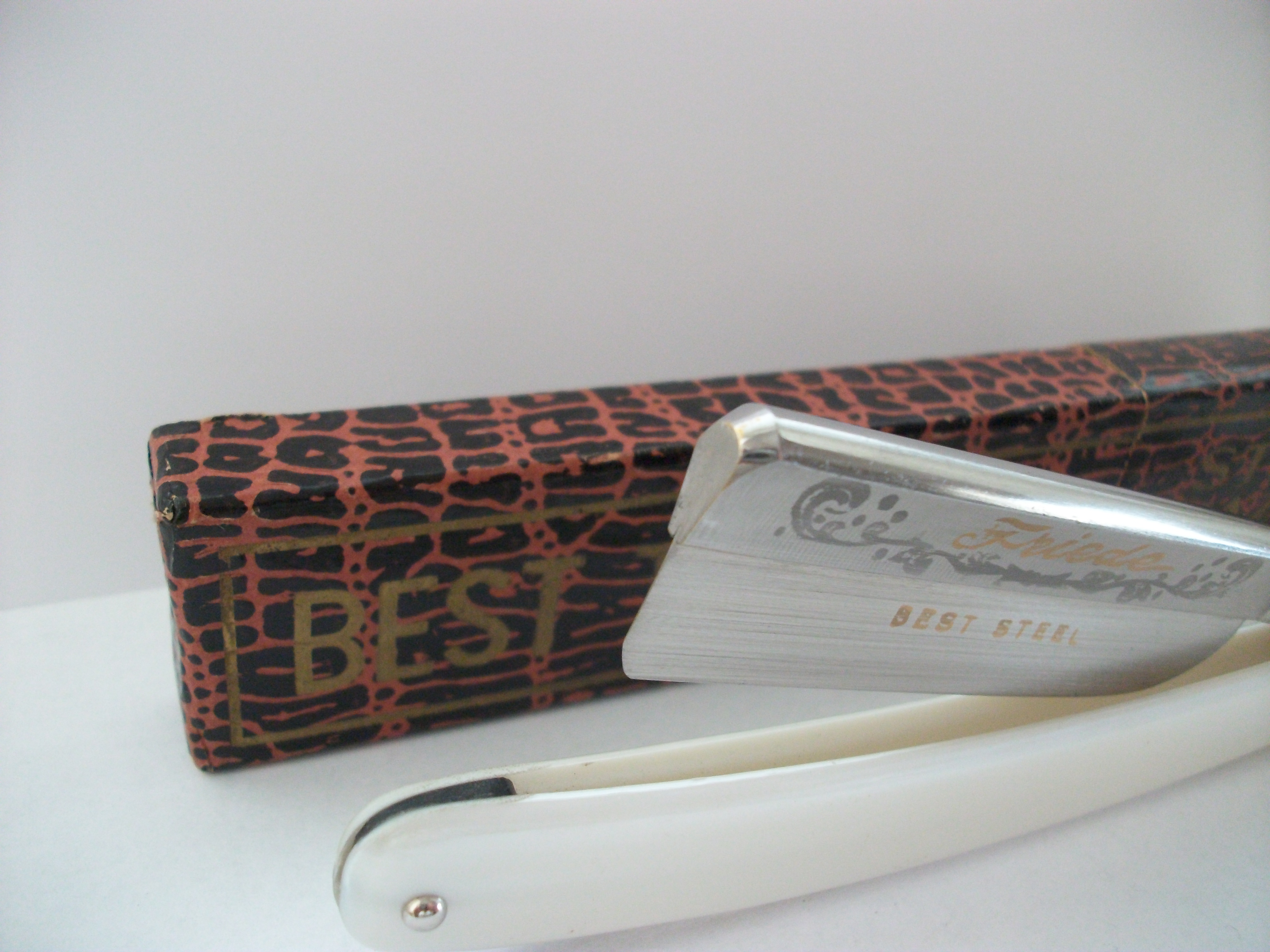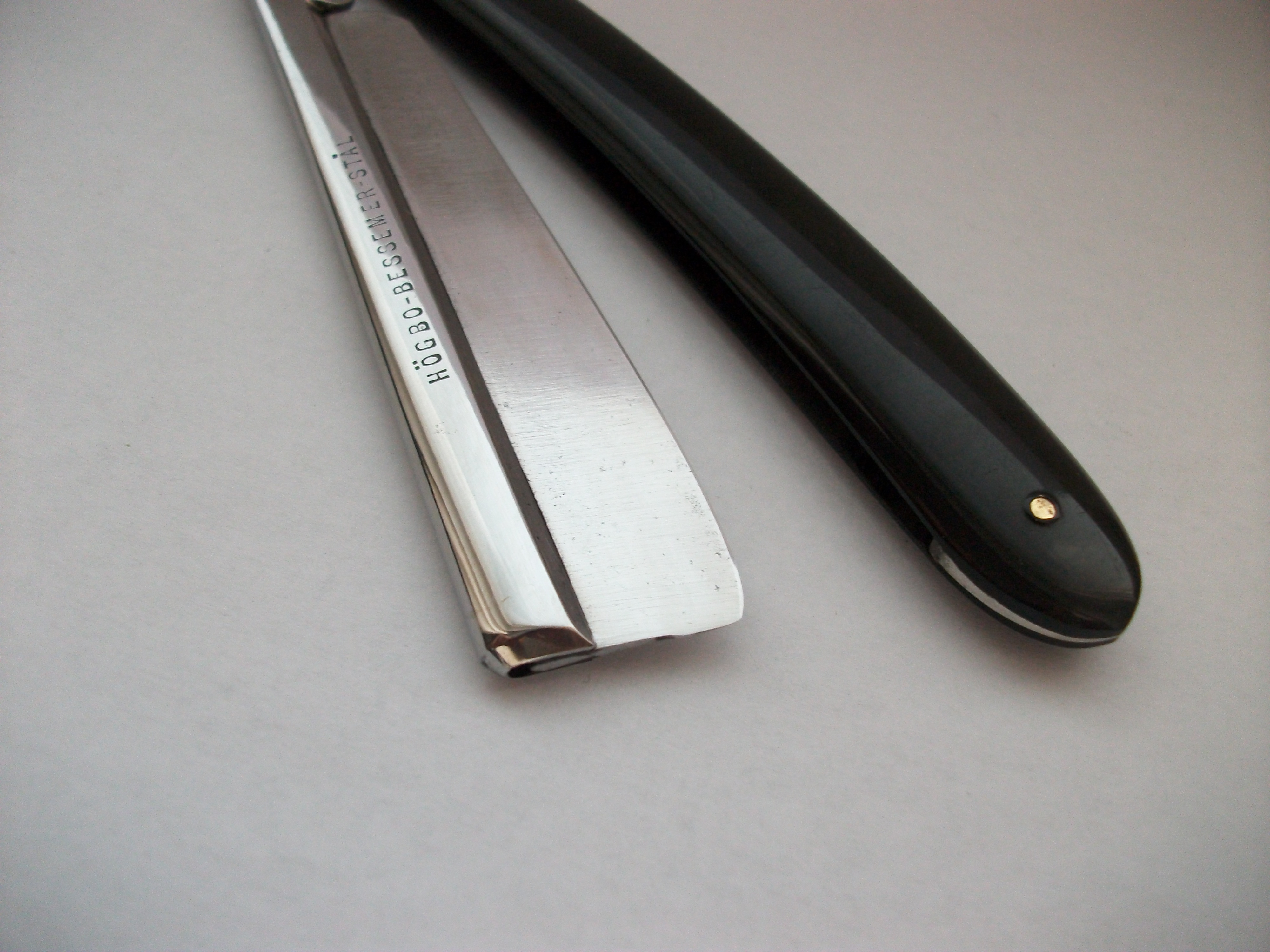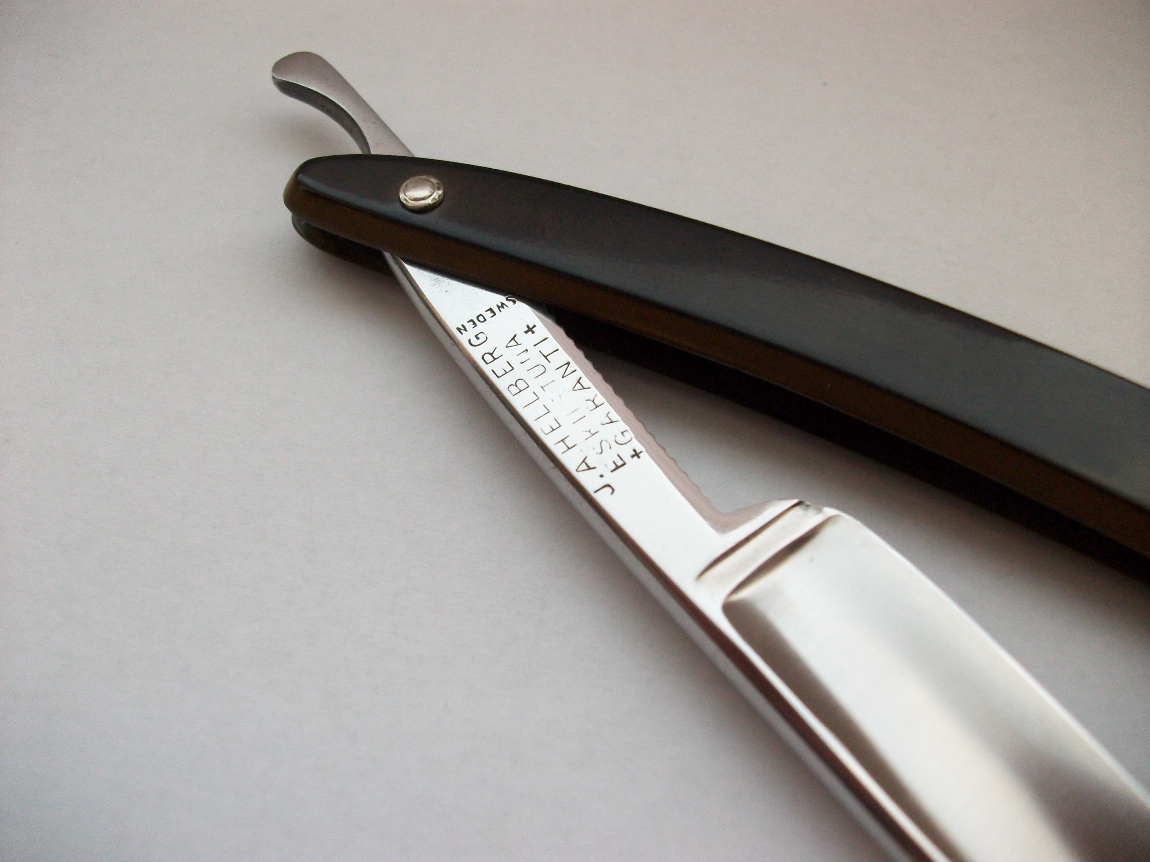 Редкий Шведский производитель, клинок имеет грубоватый заводской сатин, эрль так же не полирован в зеркало и имеет риски, вообще бритва достаточно брутальная и габаритная . Сталь углеродистая, ширина полотна 20мм, ручка пластик. На полотне имеются заводские следы от окалины . Хорошая геометрия . Клеймо производителя выполнено травлением. В общем бритва оставляет ощущение качественной вещи. Цена Продано Spoiler Show