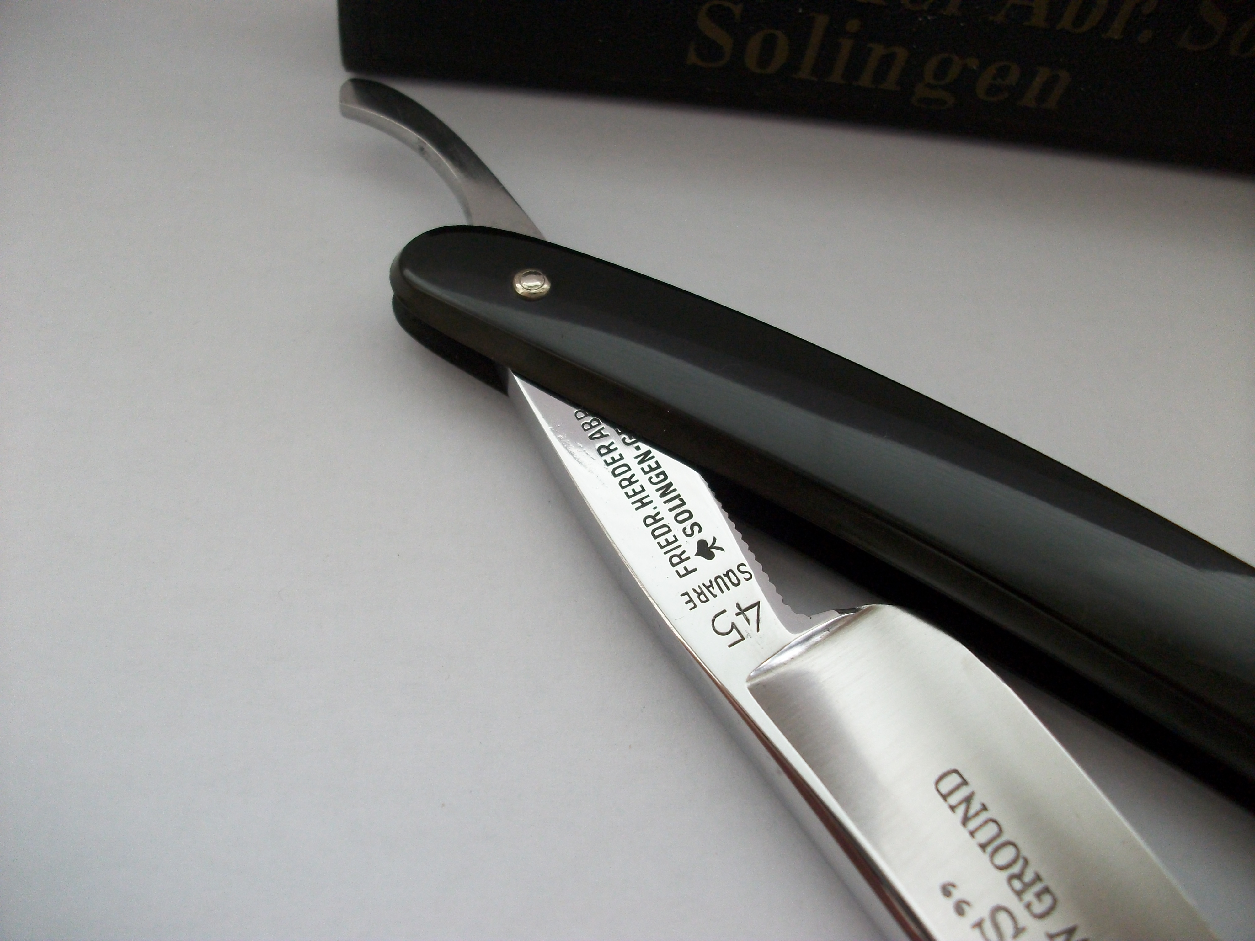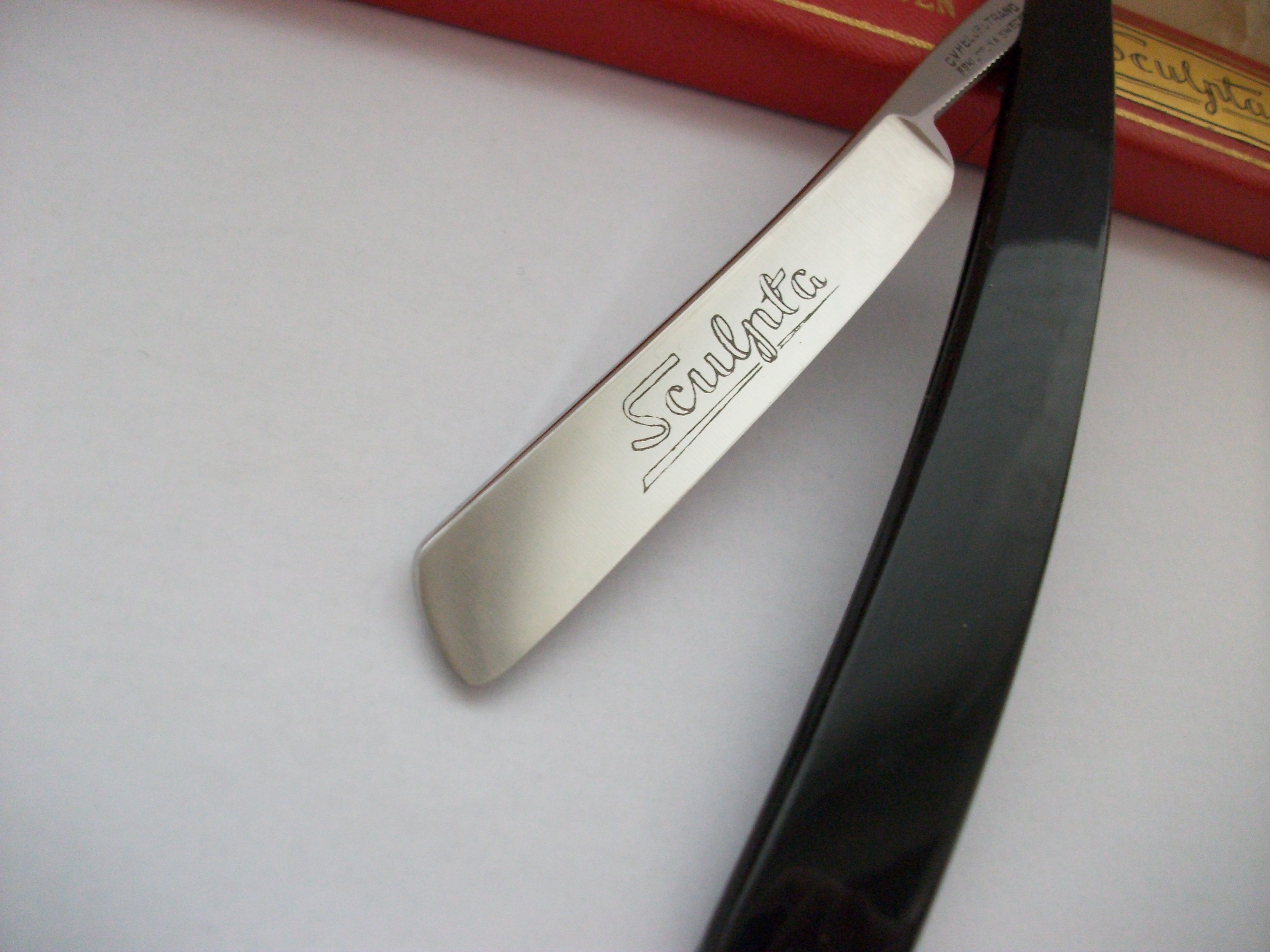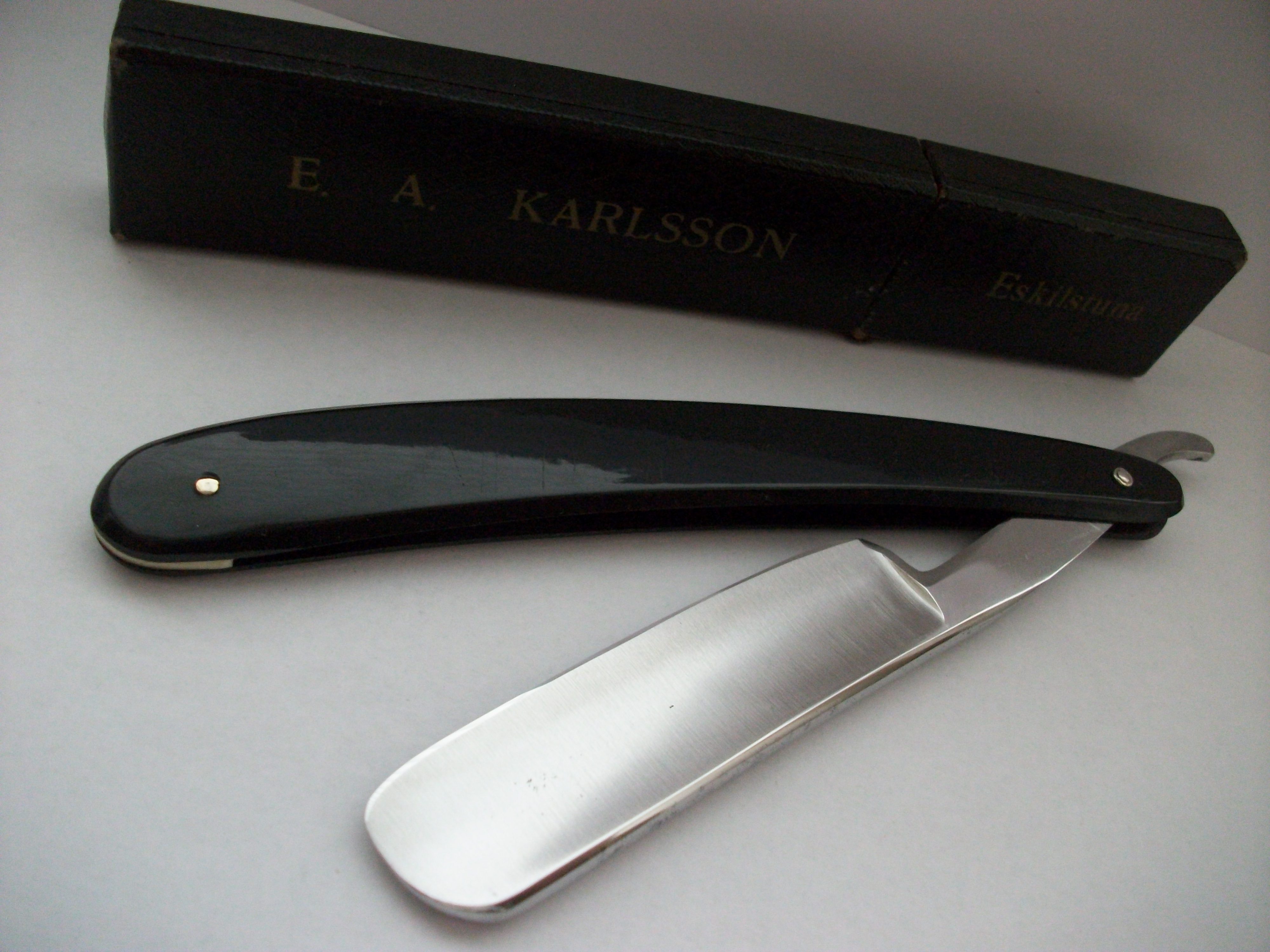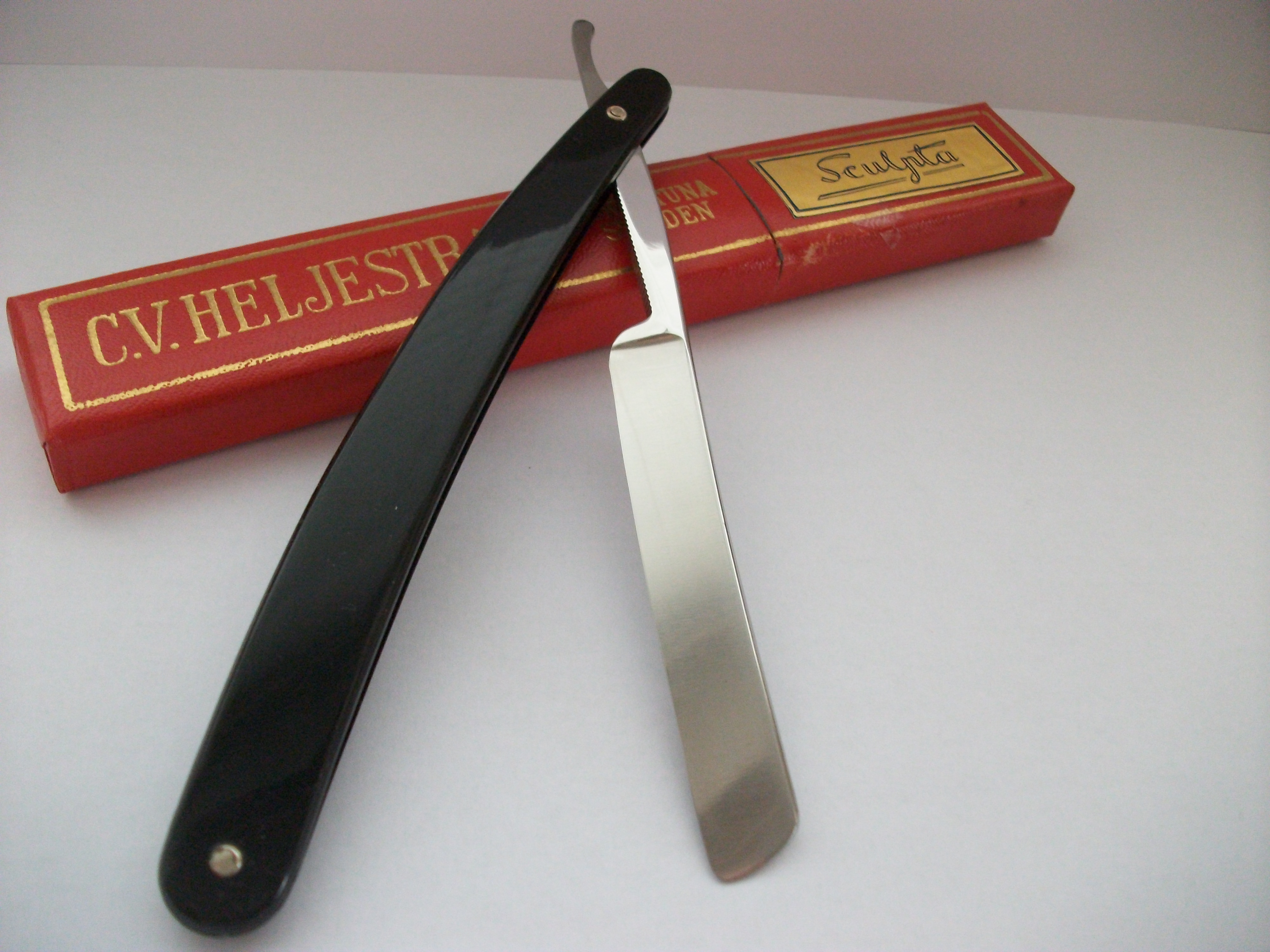C.V.Heljestrand Абсолютное новье, лично снял пломбу при открытии коробочки. Узкая бритва из углеродистой стали, ширина полотна 11мм, ручка пластик. По желанию может быть заточена - включено в стоимость. Продано. Spoiler Show