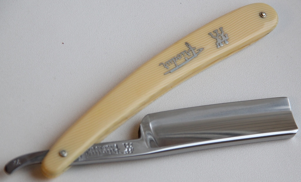 Для тех, кто хочет попробовать бритье клинковой бритвой по максимуму, не тратя больших средств, могу предложить вот такого древнего немца, с прекрасной, качественной сталью.