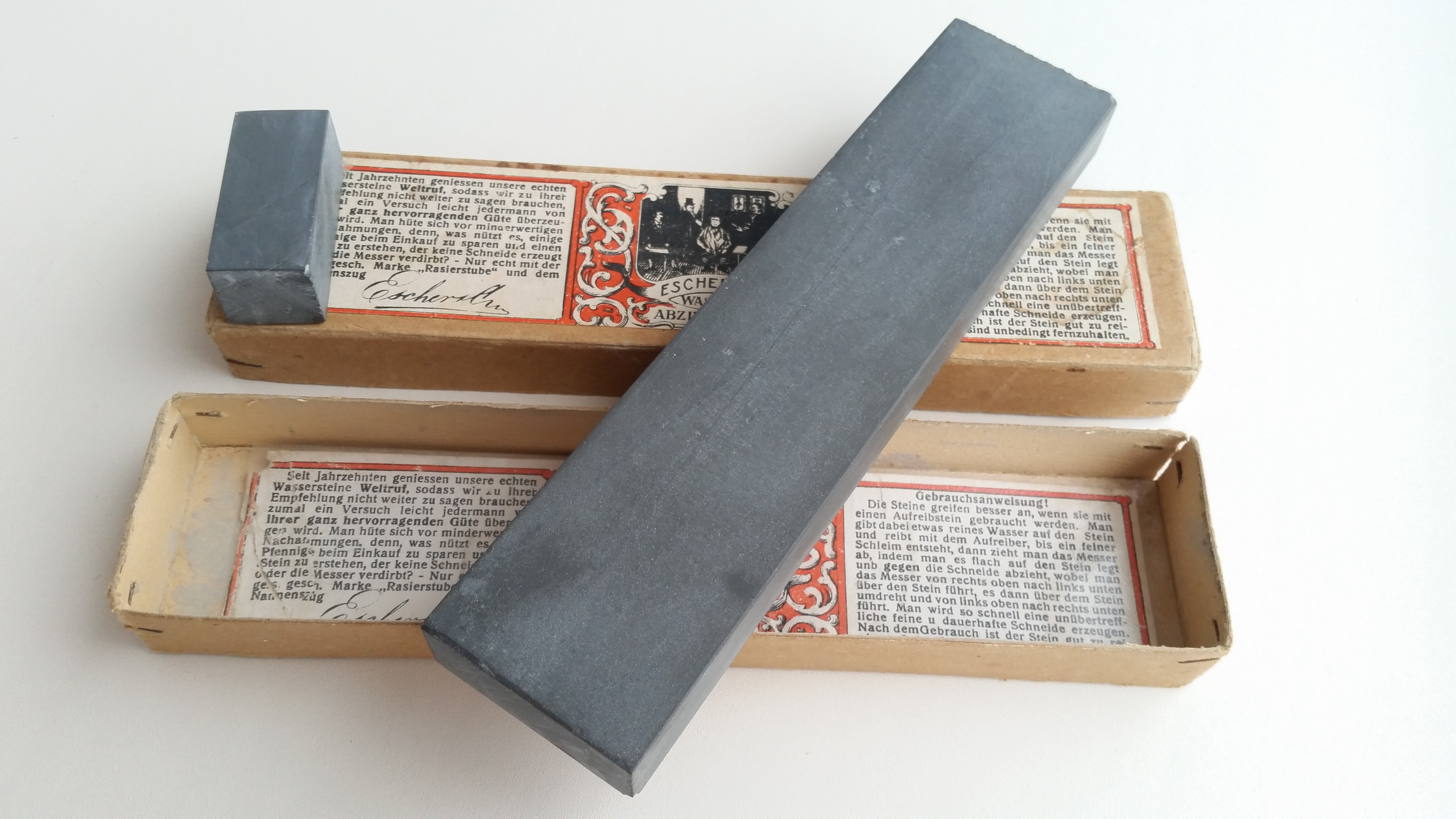 Атрибутированный Escher, стандартный размер 7х1.5 дюйма, идет в родной номерной коробочке с этикеткой (на коробке тоже есть этикетка). Родной слурик из той же породы в комплекте. Этикетку с самого камня отклеил и положил в коробочку чтобы сохранить. Рабочая сторона камня доведена до F1000. Камень имеет размеры 175х40х16 мм. Продаю так как имеется еще один Эшер и я решил себе оставить его. Есть видео о этом камне на моем канале. Цена - руб. К бритве рекомендую приобрести ремень для правки опасных бритв моего изготовления из итальянской кожи (подробнее на странице 4, объявления 56-58) Spoiler Show
