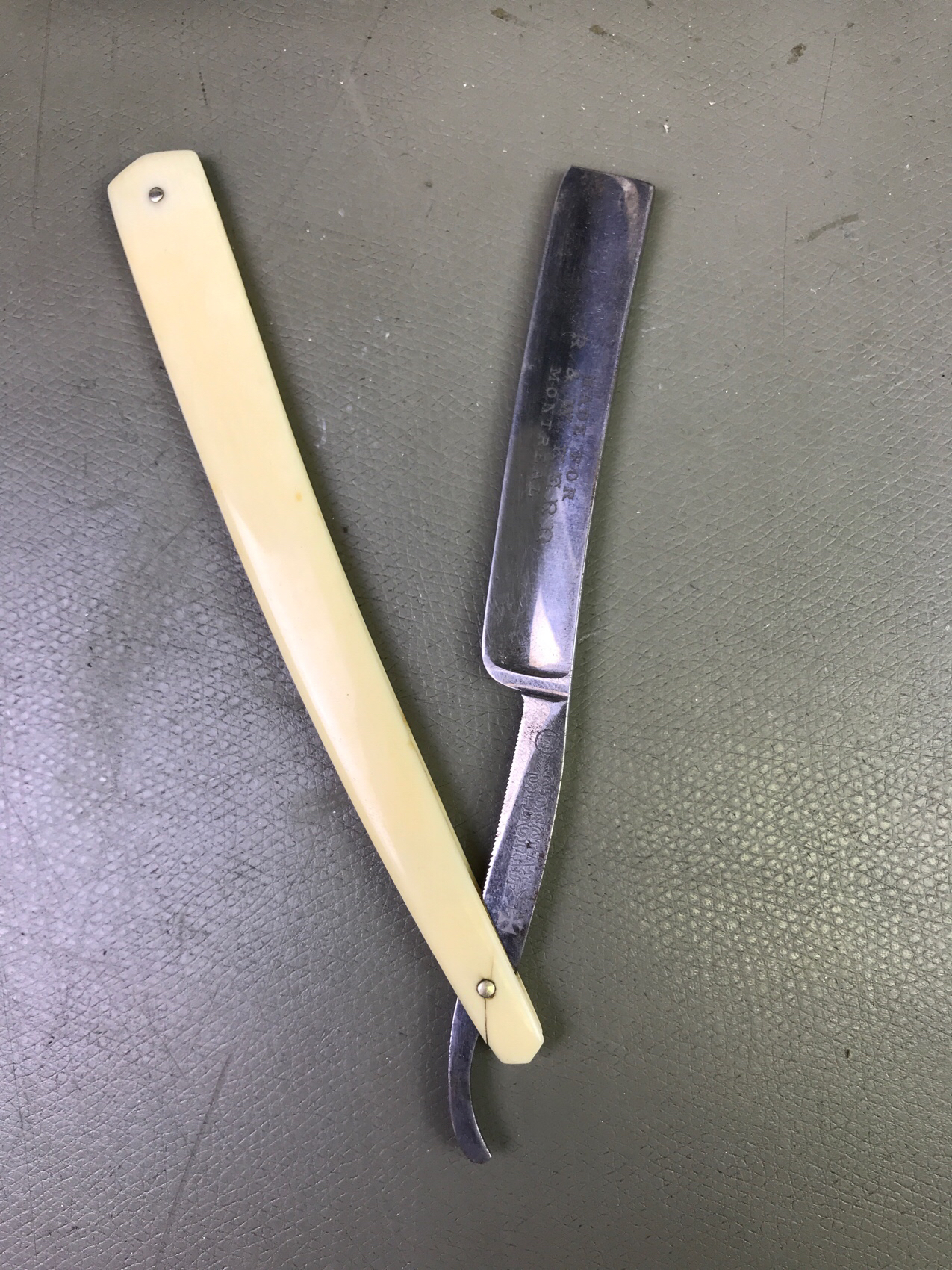 Насколько я знаю, это старая английская бритва из Шеффилда. По словам продавца, это конец 19 века. Но почему она такая "толстая", семь с небольшим мм, я имею в виду толщина обуха? Интересует примерный возраст и стоимость. Рукоять из рога, всего одна небольшая трещинка у пина. Да и вообще, накидайте информации побольше!