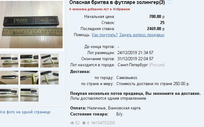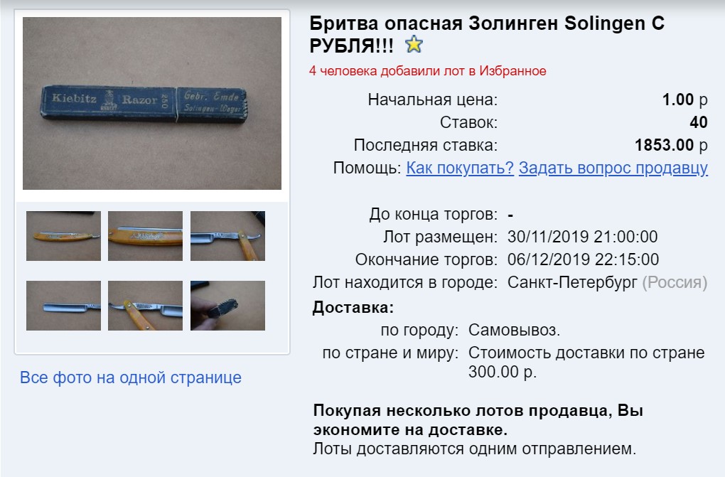 Что-то раньше я не особо собирал аукционы, поэтому пока их не много и выводы делать рано. Вот наберется штук 100 по советским бритвам, и сотня по иностранным, тогда и обработаем статистику.