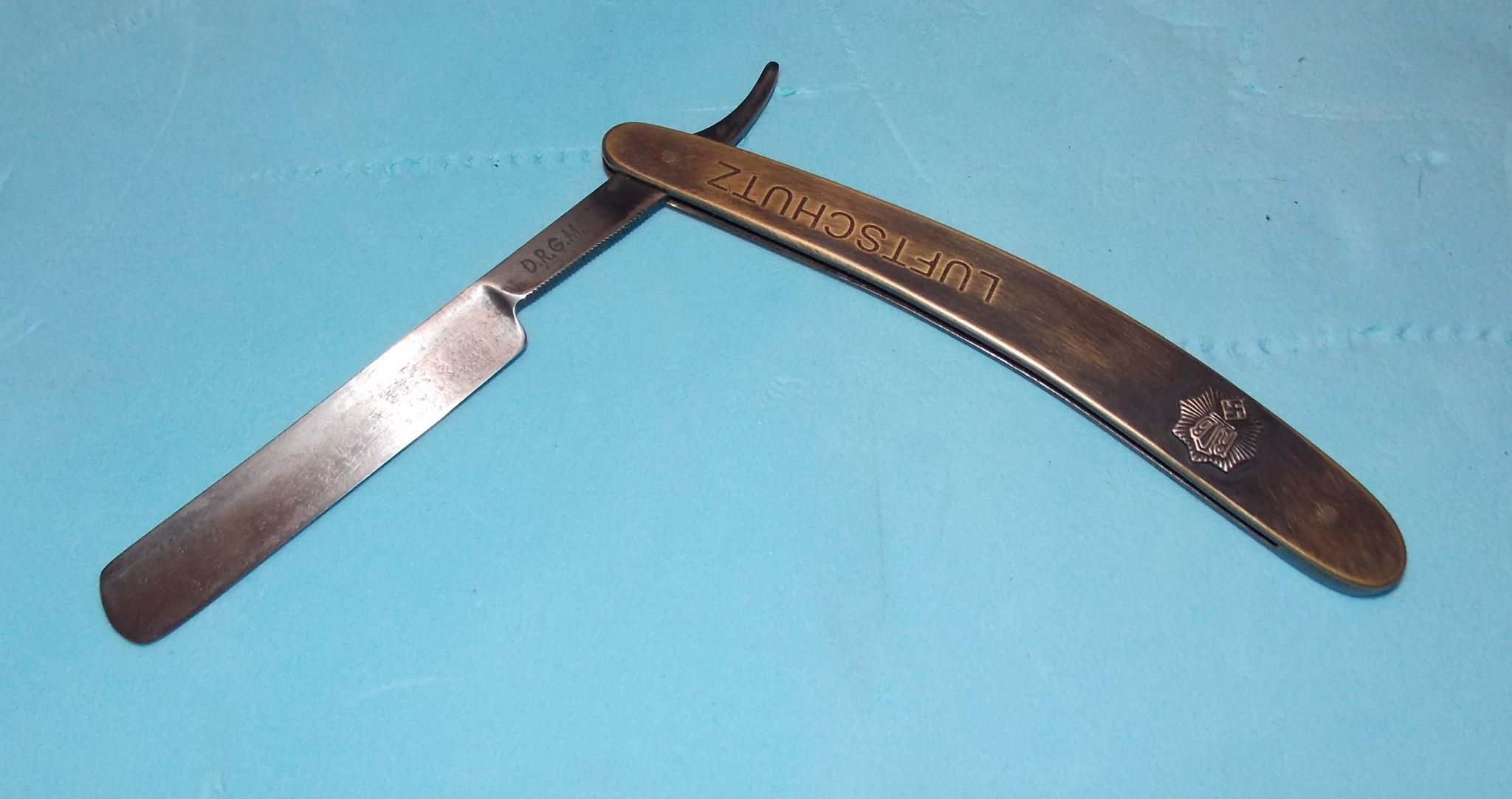 бритва с надписью luftschutz и значком противовоздушной гражданской обороны со свастикой.