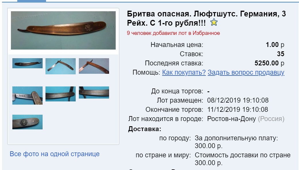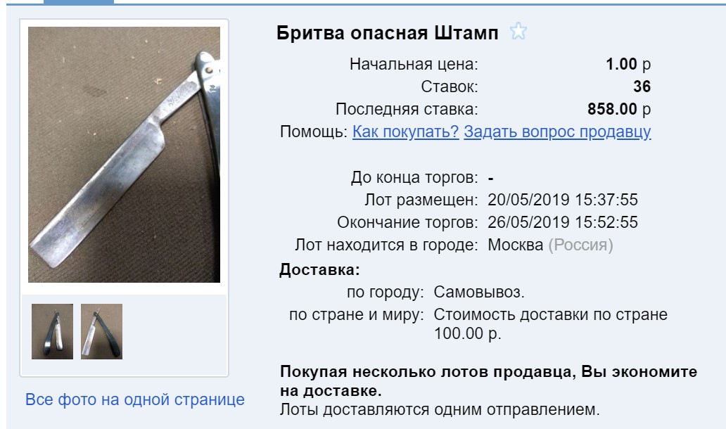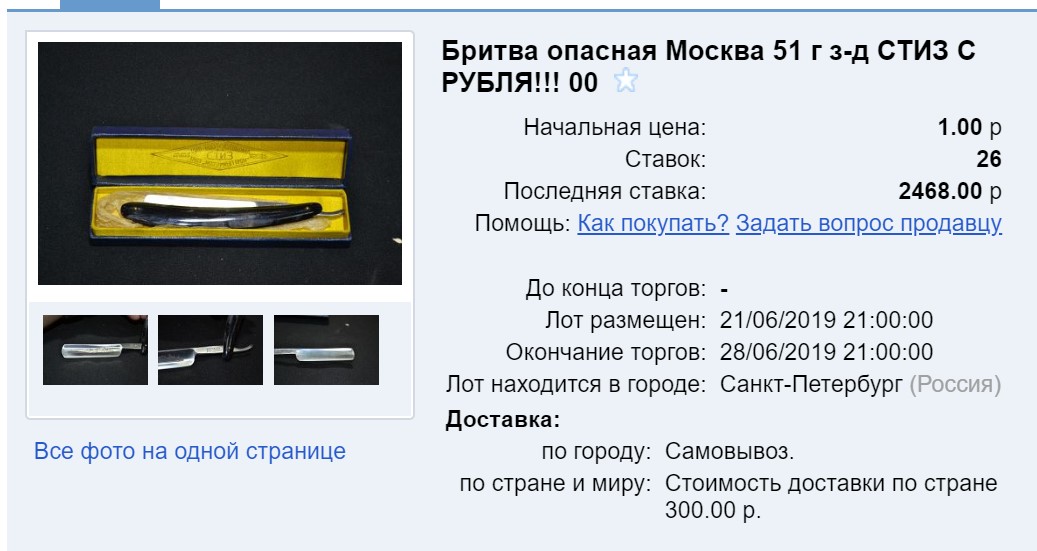Что-то раньше я не особо собирал аукционы, поэтому пока их не много и выводы делать рано. Вот наберется штук 100 по советским бритвам, и сотня по иностранным, тогда и обработаем статистику.