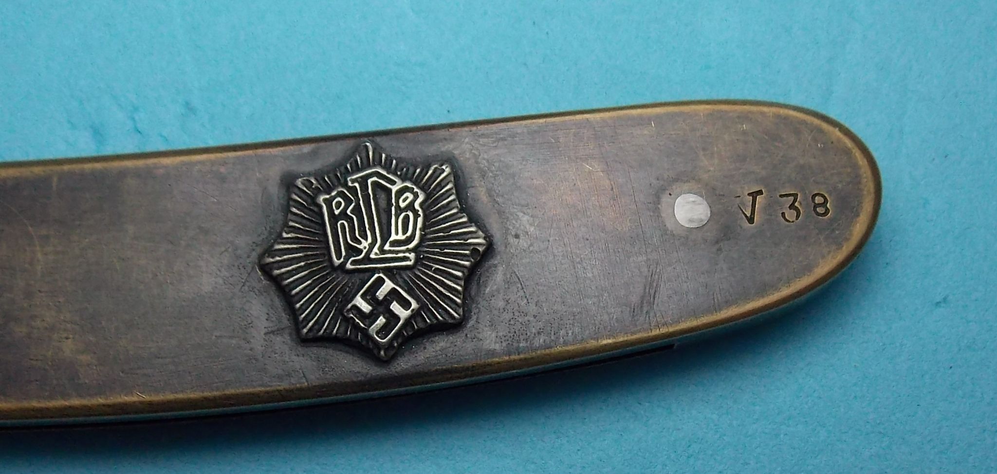 бритва с надписью luftschutz и значком противовоздушной гражданской обороны со свастикой.